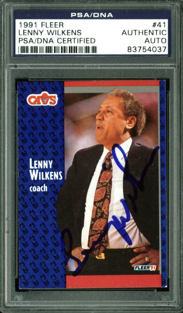 Cavaliers Lenny Wilkens Authentic Signed Card 1991 Fleer #41 PSA/DNA Slabbed