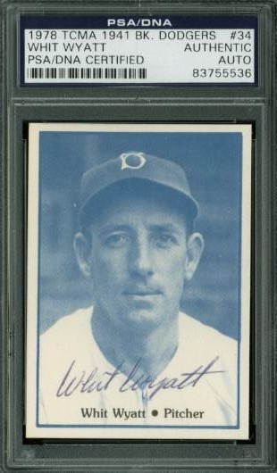 Dodgers Whit Wyatt Signed Card 1978 Tcma 1941 Bk. Dodgers #34 PSA/DNA Slabbed