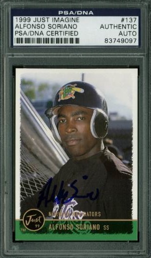 Yankees Alfonso Soriano Signed Card 1999 Just Imagine Rc #137 PSA/DNA Slabbed