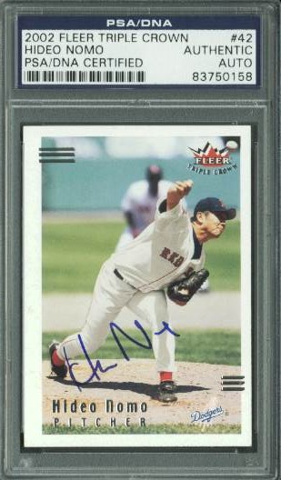 Red Sox Hideo Nomo Signed Card 2002 Fleer Triple Crown #42 PSA/DNA Slabbed