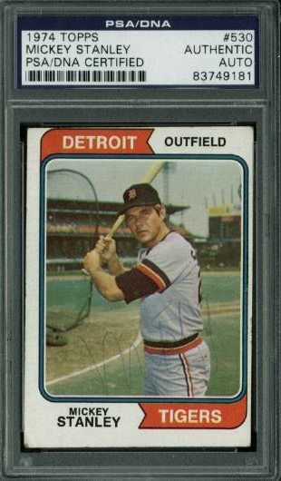 Tigers Mickey Stanley Authentic Signed Card 1974 Topps #530 PSA/DNA Slabbed