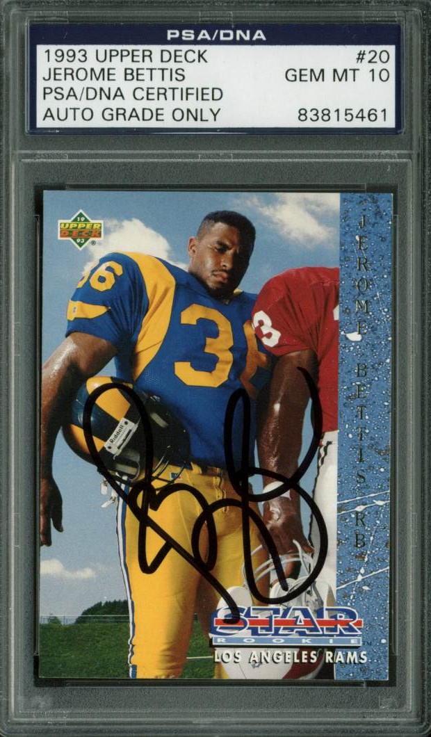 Jerome Bettis Signed Card 1993 UD RC #20 Auto Graded Gem Mint 10! PSA Slabbed 2