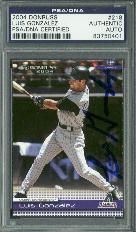 D-Backs Luis Gonzalez Authentic Signed Card 2004 Donruss #218 PSA/DNA Slabbed