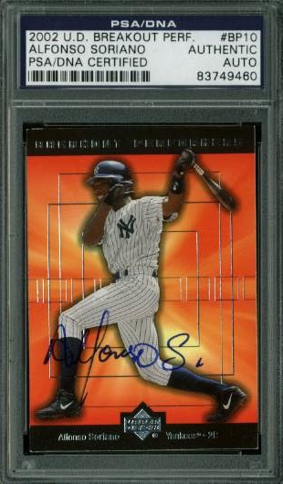 Yankees Alfonso Soriano Signed Card 2002 U.D. Breakout Perf. #Bp10 PSA Slabbed