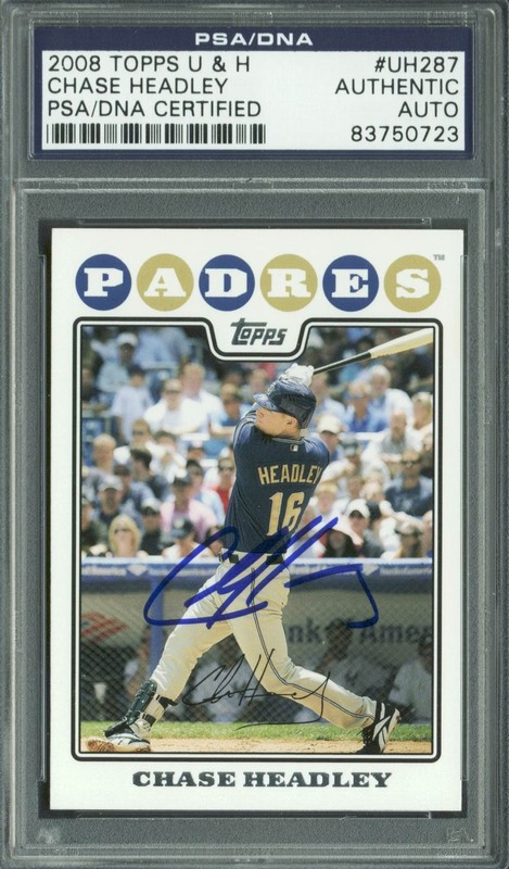 Padres Chase Headley Authentic Signed Card 2008 Topps U&H #UH287 PSA/DNA Slabbed