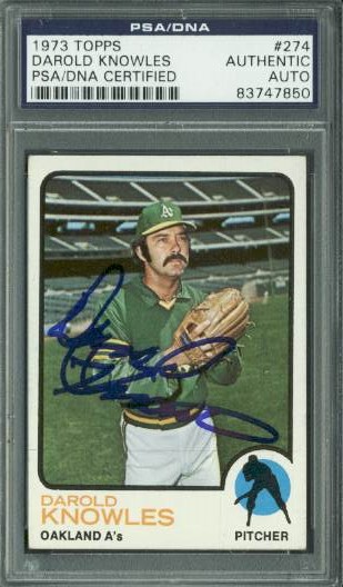 Athletics Darold Knowles Authentic Signed Card 1973 Topps #274 PSA/DNA Slabbed