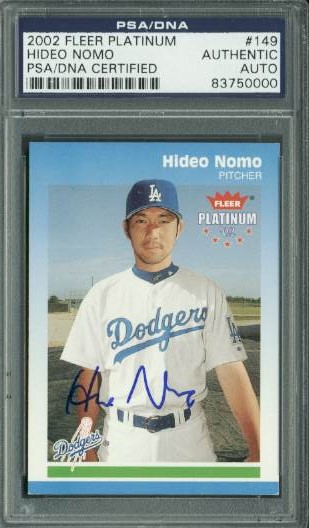 Dodgers Hideo Nomo Authentic Signed Card 2002 Fleer Platinum #149 PSA Slabbed
