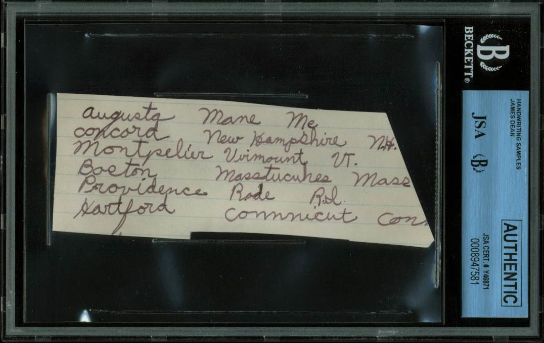 James Dean 2x5 Handwriting Sample from 5th Grade Notebook JSA Slabbed #8947581