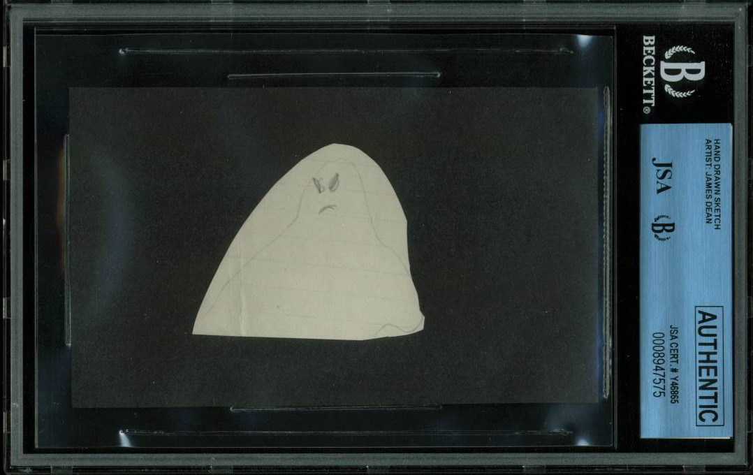 James Dean 2x2 Hand Drawn Sketch from 5th Grade Notebook JSA Slabbed #8947575