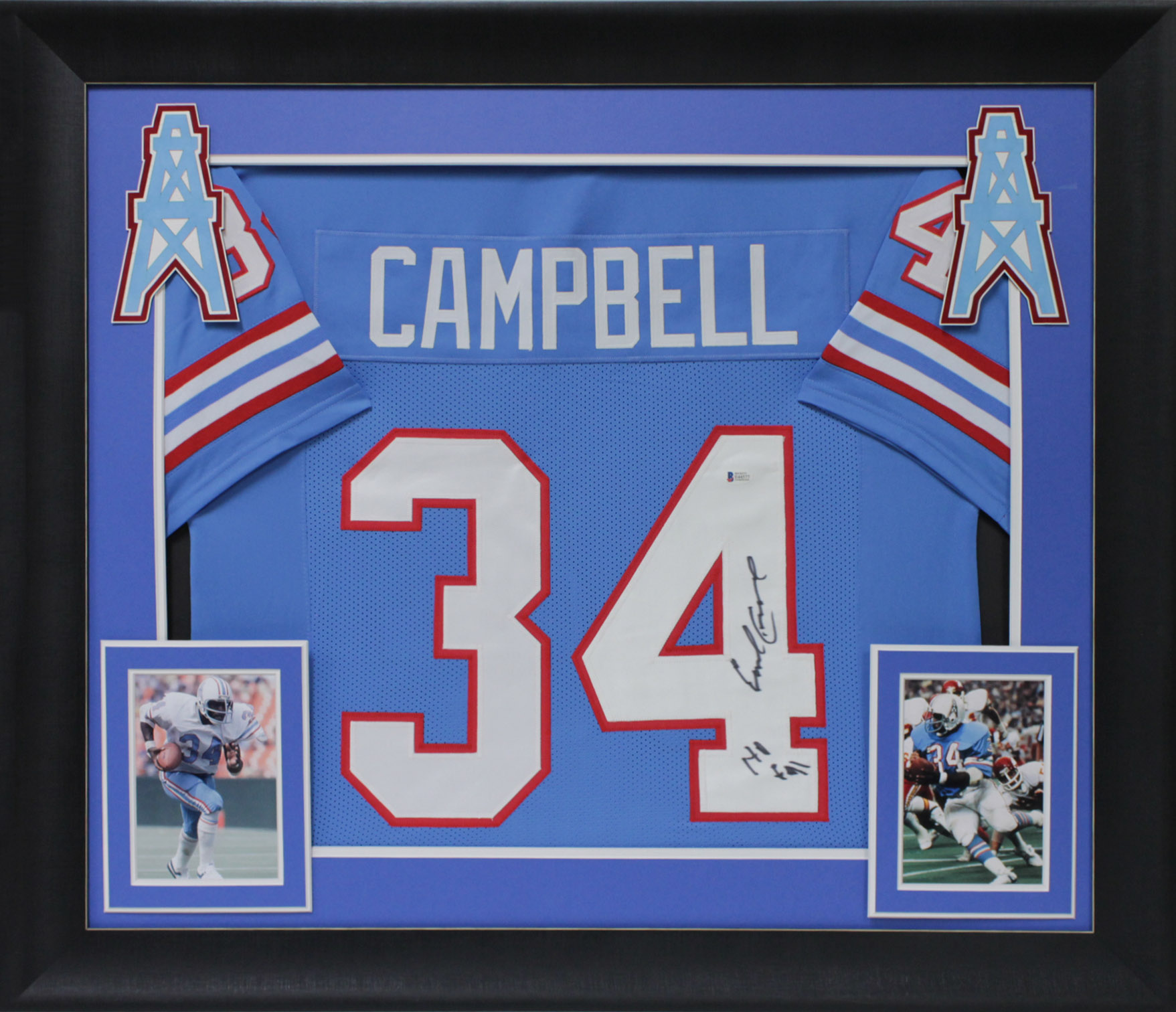 Oilers Earl Campbell Authentic Signed Blue Framed Jersey Autographed BAS