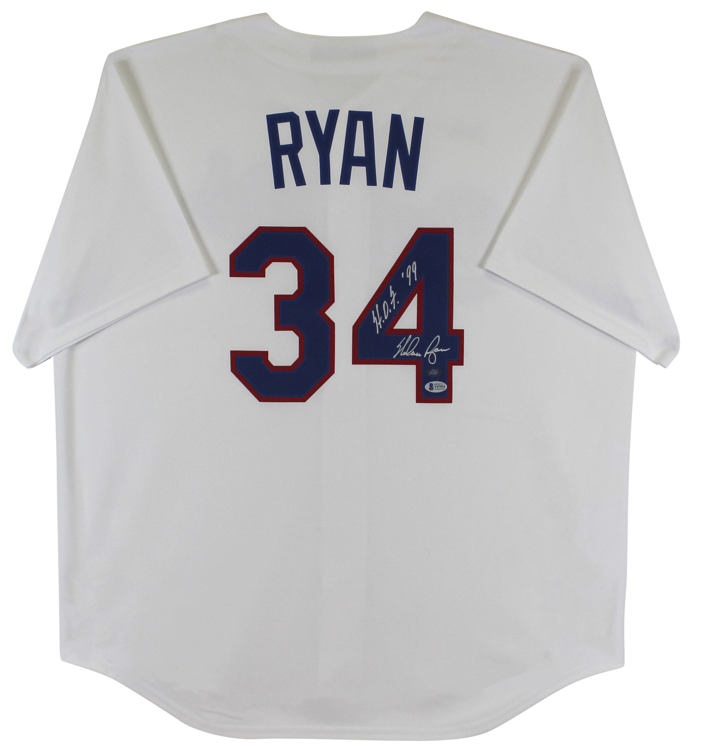 Rangers Nolan Ryan "HOF 99" Signed Nike White Cooperstown Collection Jersey BAS