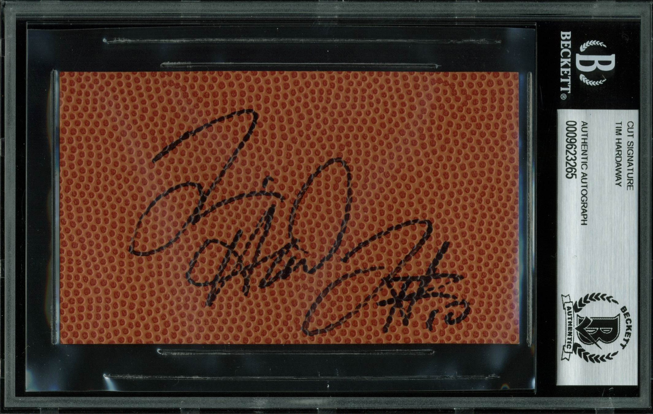 Warriors Tim Hardaway Authentic Signed 3x5 Basketball Cut Signature BAS Slabbed