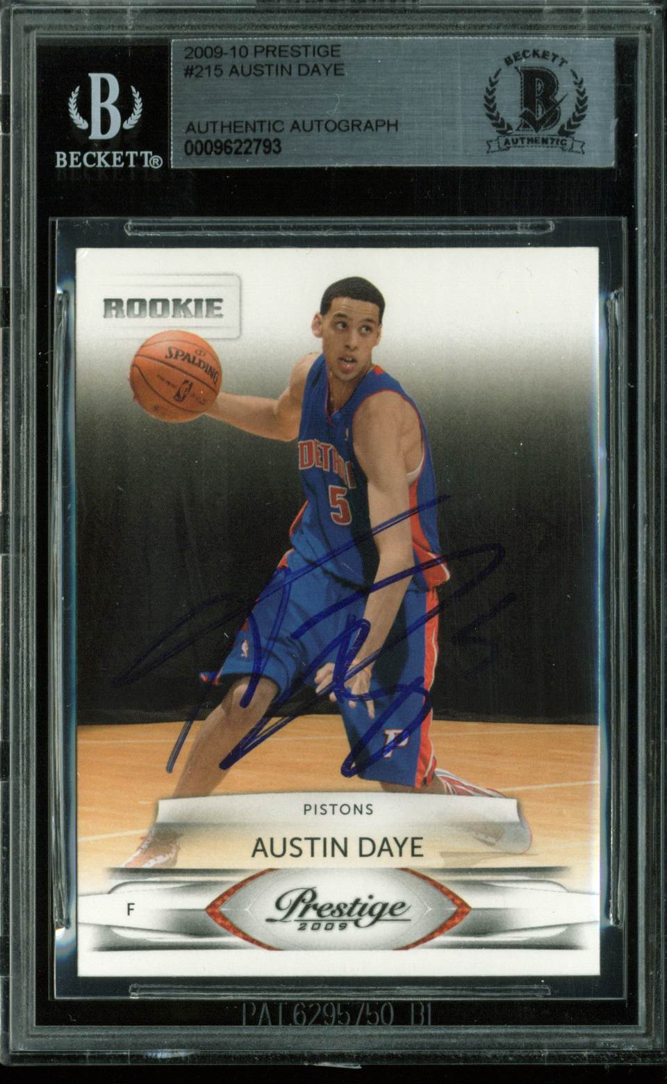 Pistons Austin Daye Authentic Signed Card 2009 Prestige RC #215 BAS Slabbed