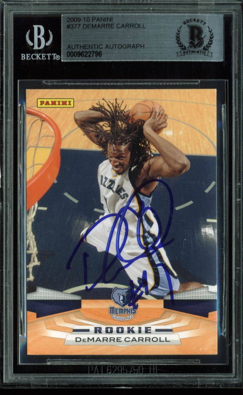 Grizzlies DeMarre Carroll Authentic Signed Card 2009 Panini RC #377 BAS Slabbed
