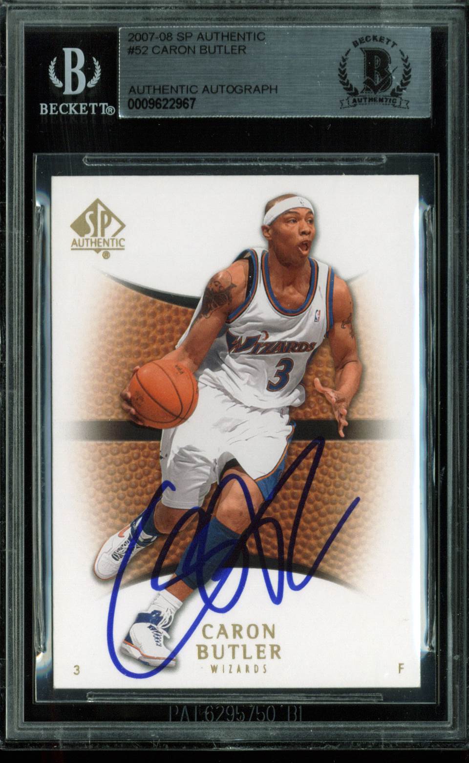 Wizards Caron Butler Authentic Signed Card 2007 SP Authentic #52 BAS Slabbed