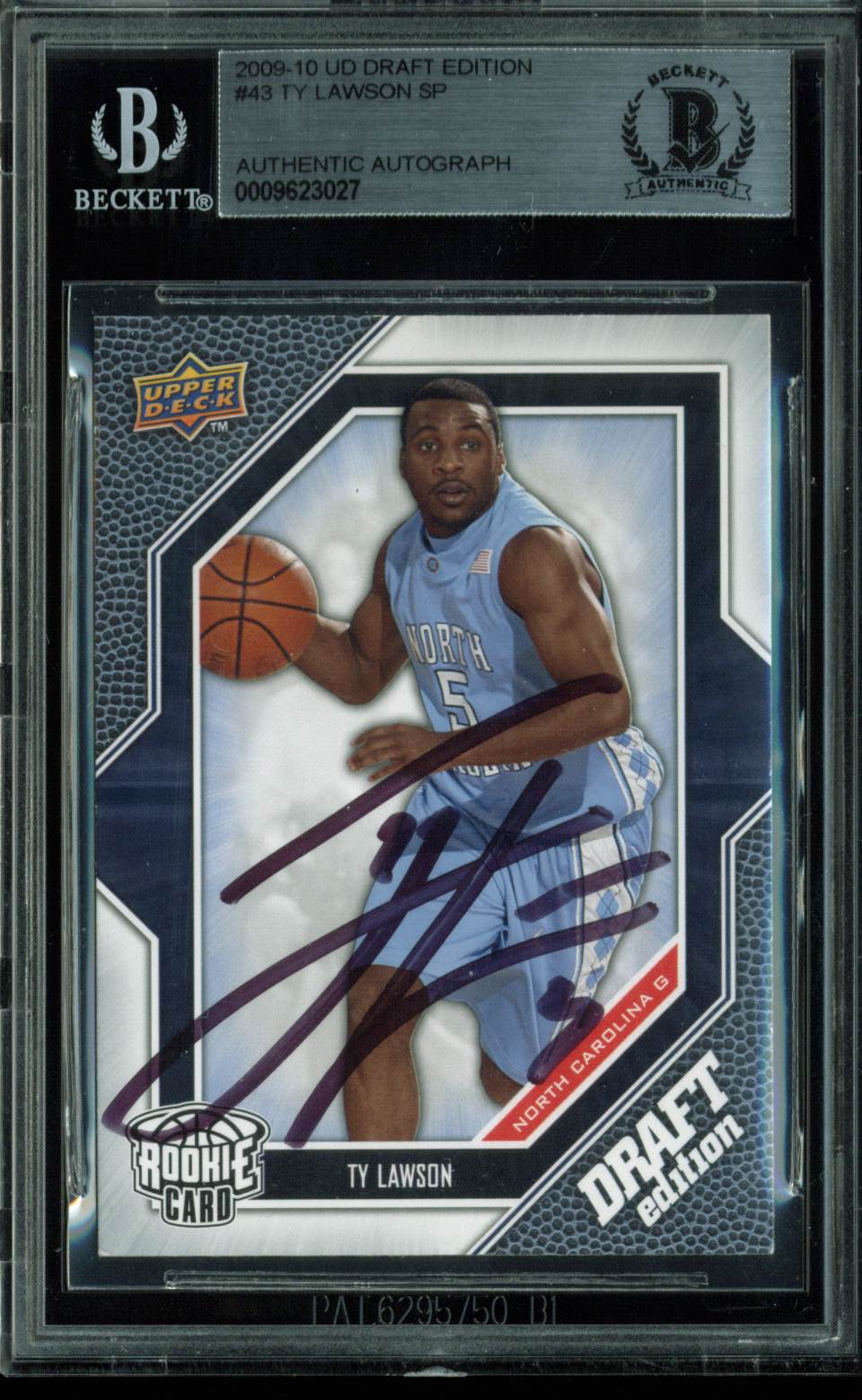 Nuggets Ty Lawson Authentic Signed Card 2009 UD Draft Edition RC #43 BAS Slabbed