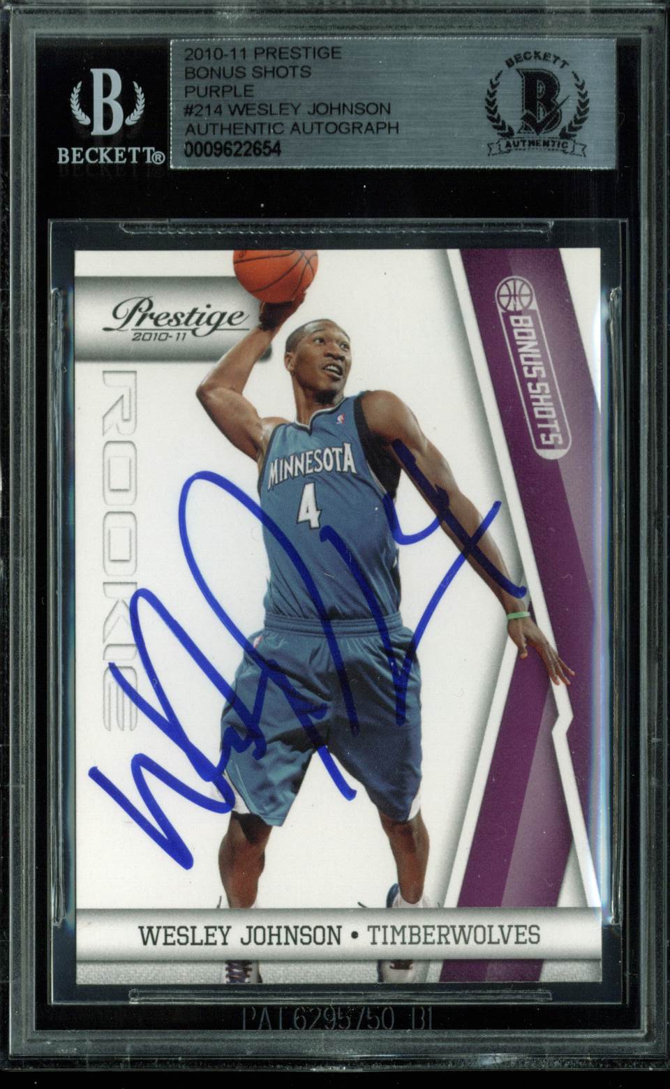 Wesley Johnson Signed Card 2010 Prestige Bonus Shots Purple RC #214 BAS Slabbed