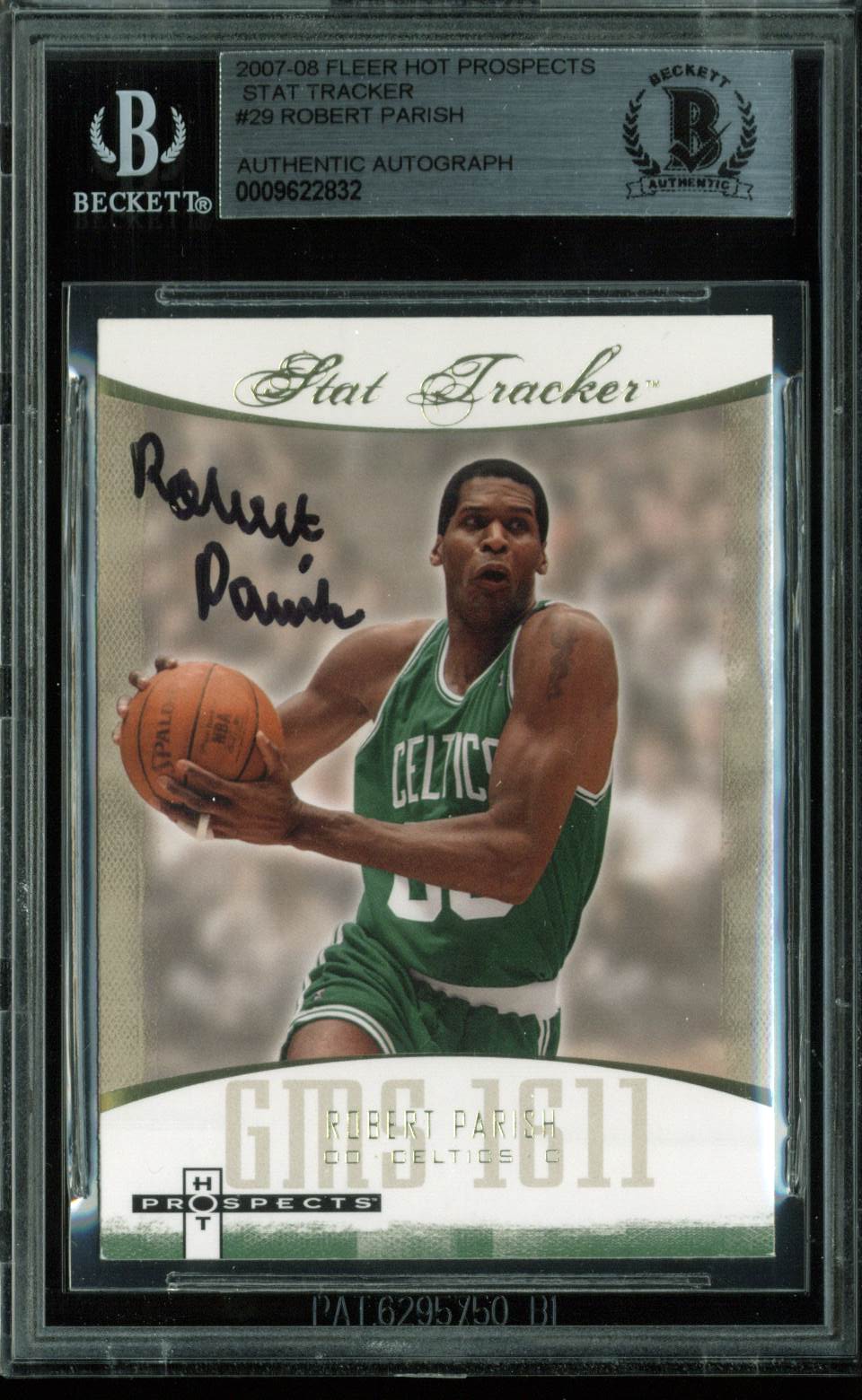Robert Parish Signed Card 2007 Fleer Hot Prospects Stat Tracker #29 BAS Slabbed