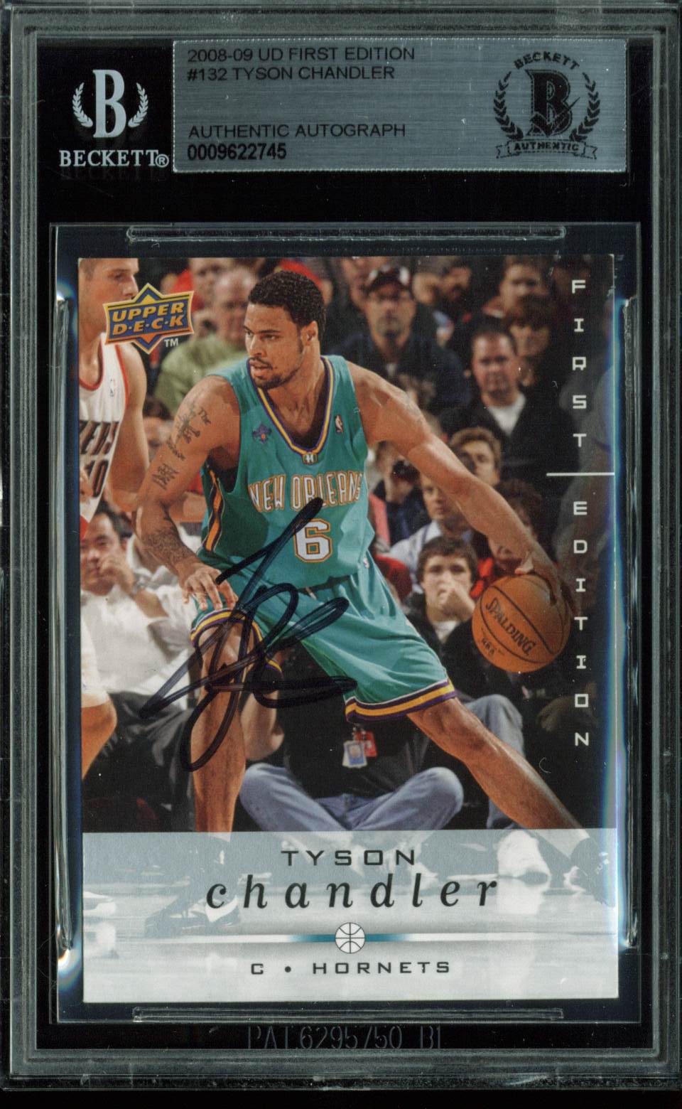 Hornets Tyson Chandler Signed Card 2008 UD First Edition #132 BAS Slabbed