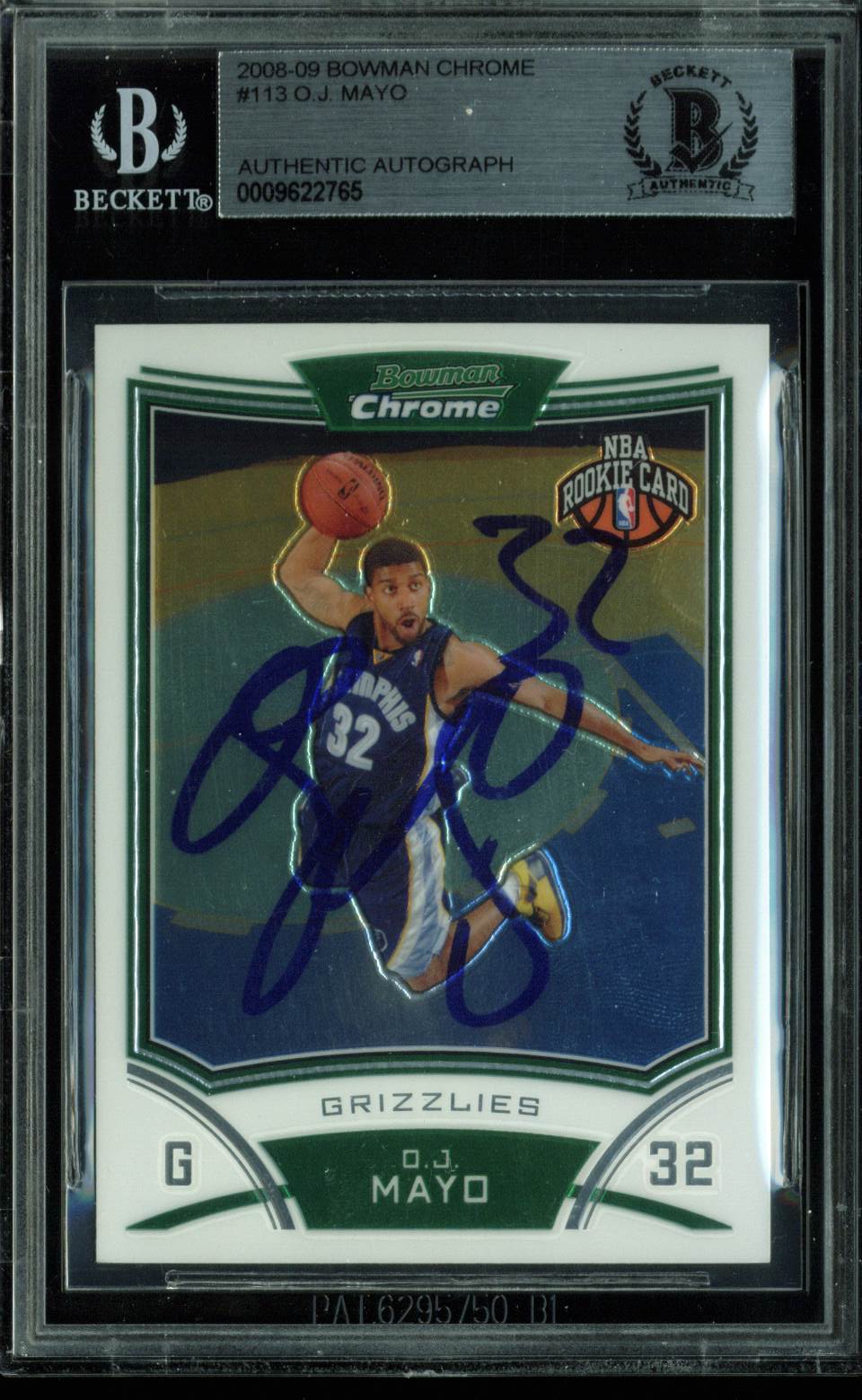 Grizzlies O.J. Mayo Authentic Signed Card 2008 Bowman Chrome RC #113 BAS Slabbed