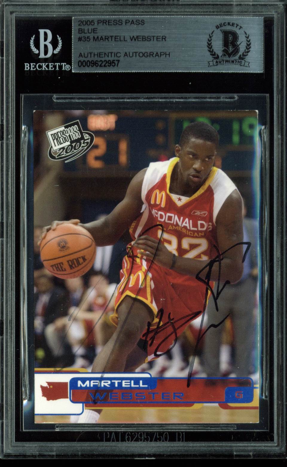 Blazers Martell Webster Signed Card 2005 Press Pass Blue RC #35 BAS Slabbed