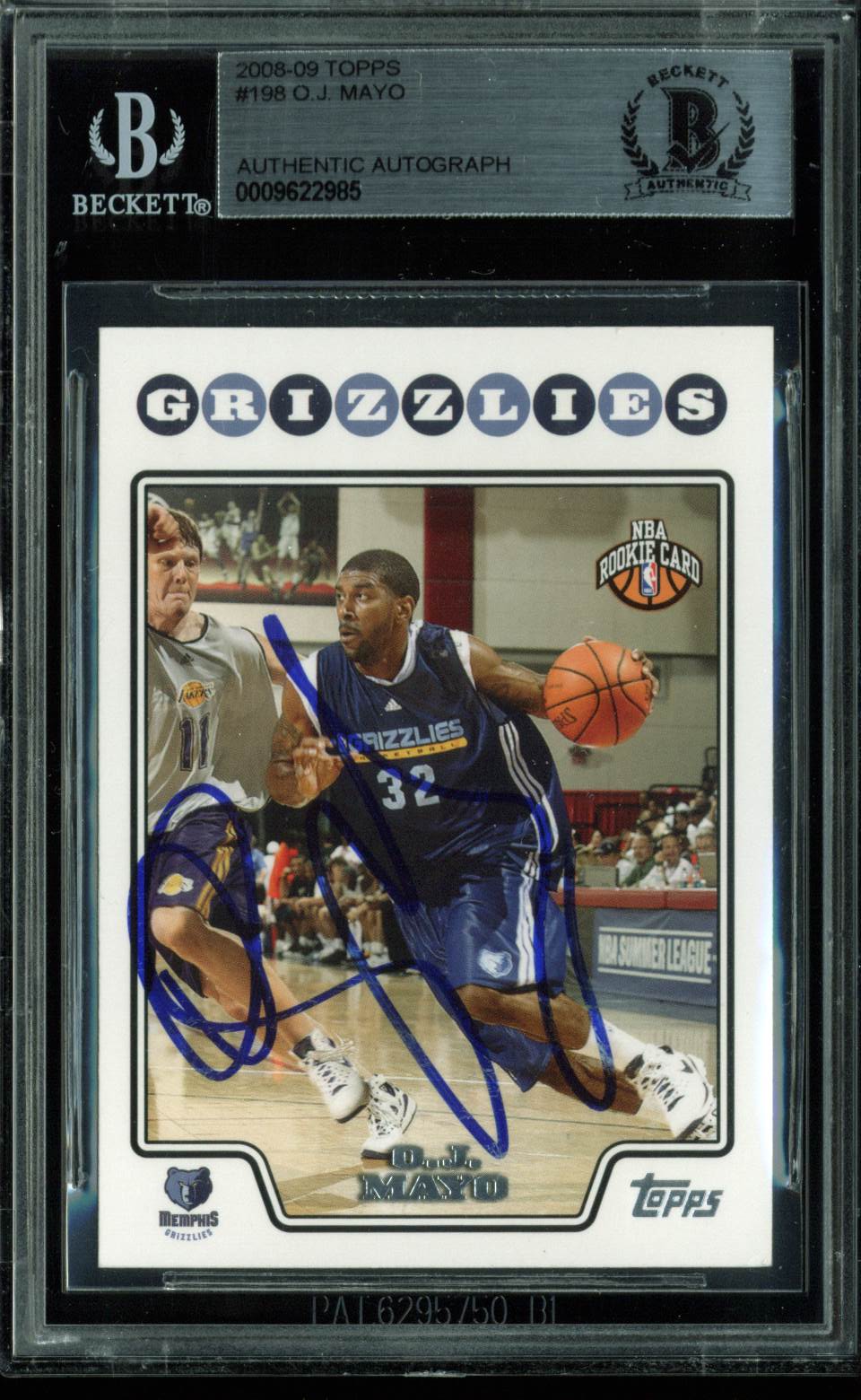 Grizzlies O.J. Mayo Authentic Signed Card 2008 Topps RC #198 BAS Slabbed