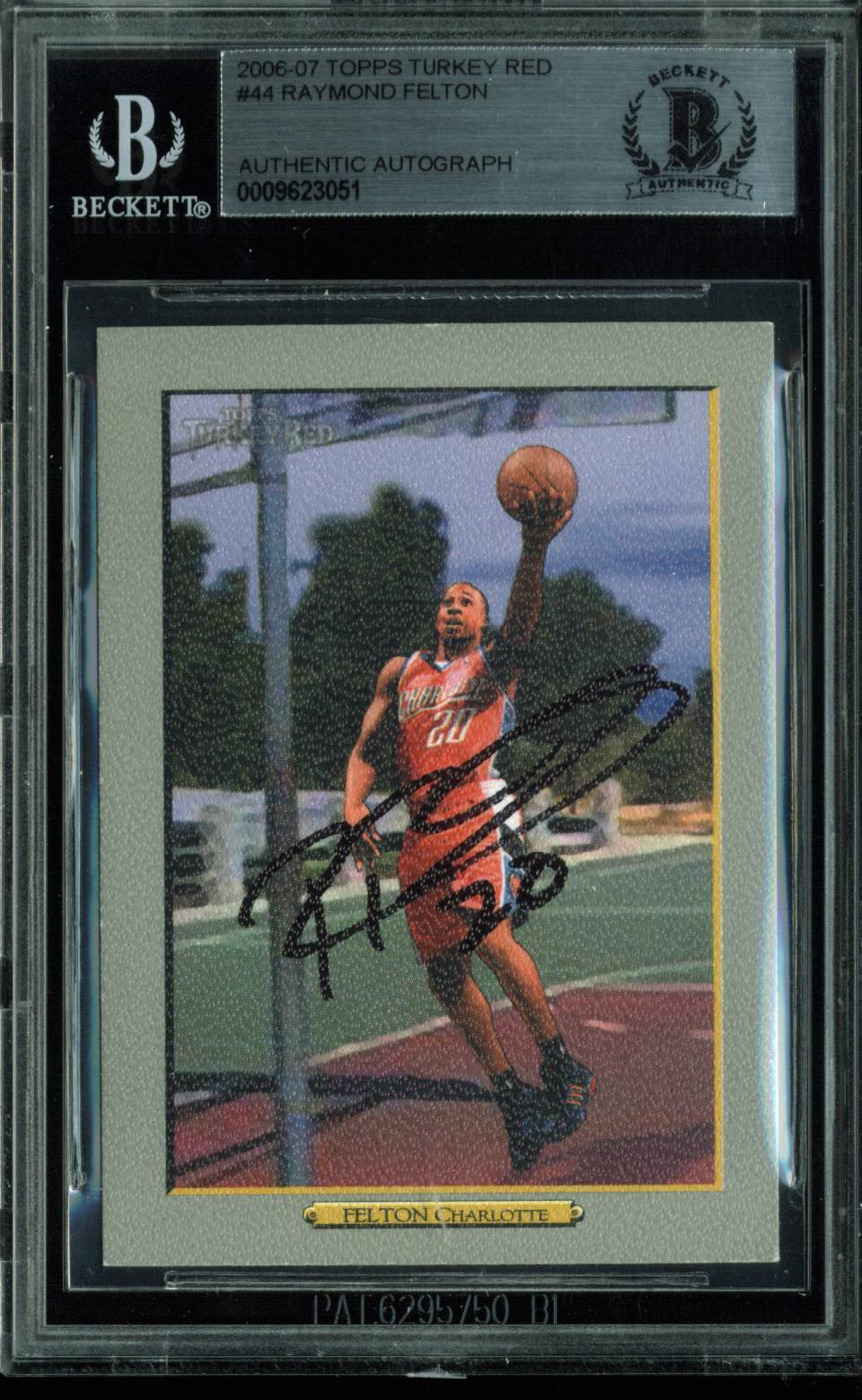 Bobcats Raymond Felton Signed Card 2006 Topps Turkey Red RC #44 BAS Slabbed