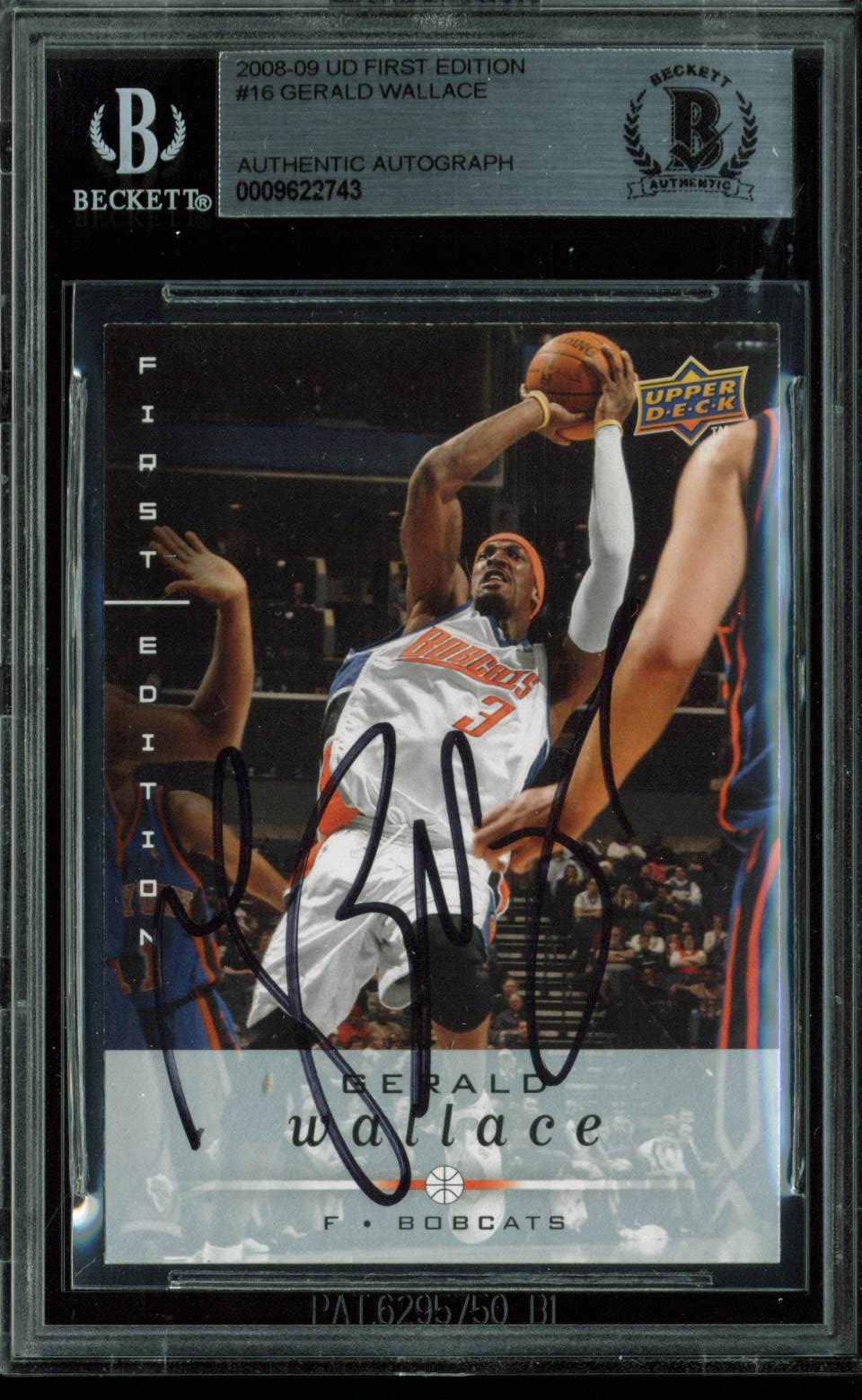 Bobcats Gerald Wallace Signed Card 2008 UD First Edition #16 BAS Slabbed