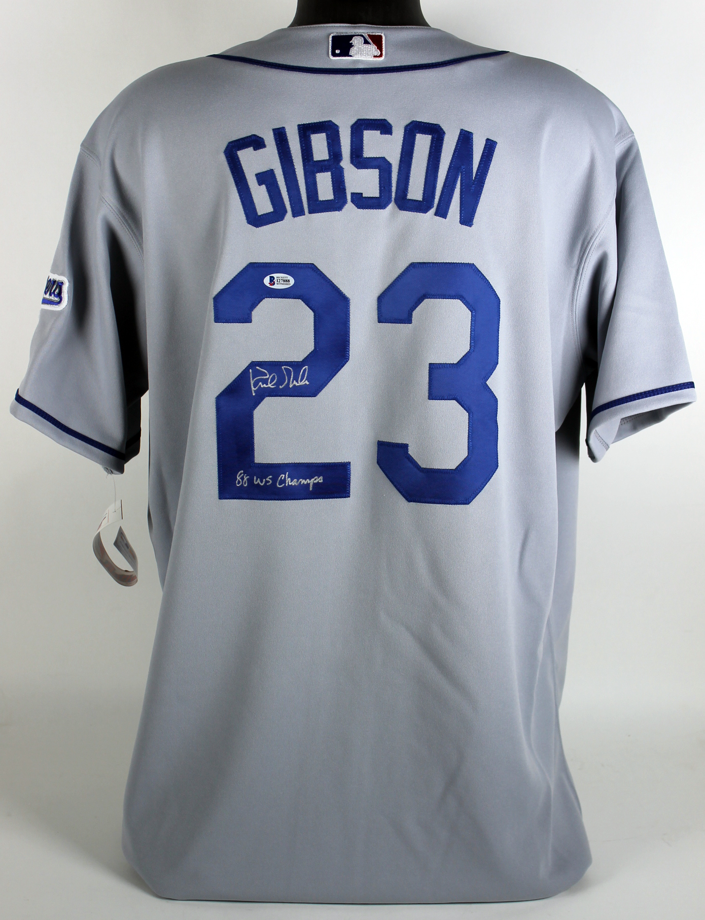 Dodgers Kirk Gibson "88 WS Champs" Signed Authentic Grey Majestic Jersey BAS
