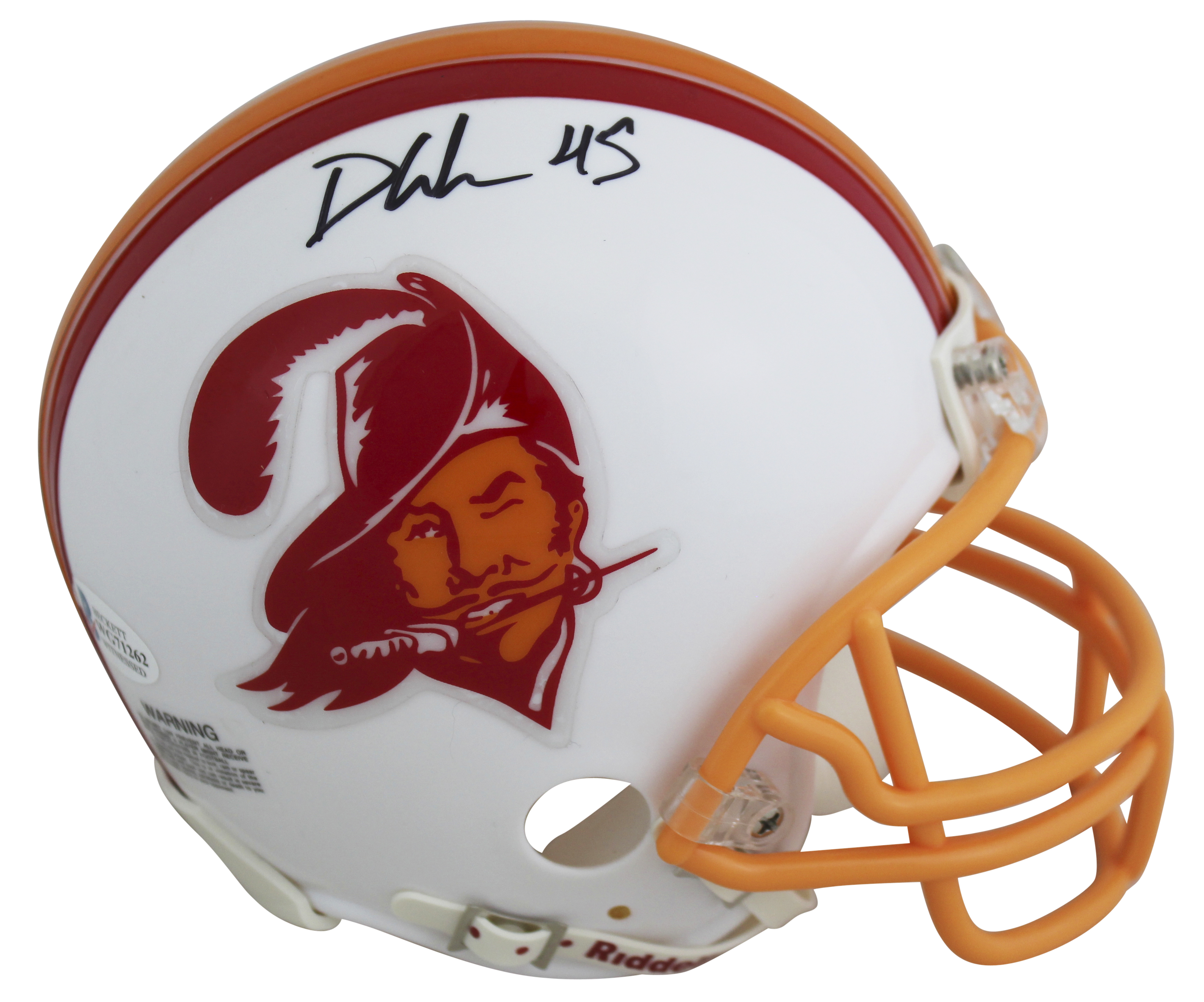 Buccaneers Devin White Authentic Signed 76-96 White TB Rep Mini Helmet BAS Wit