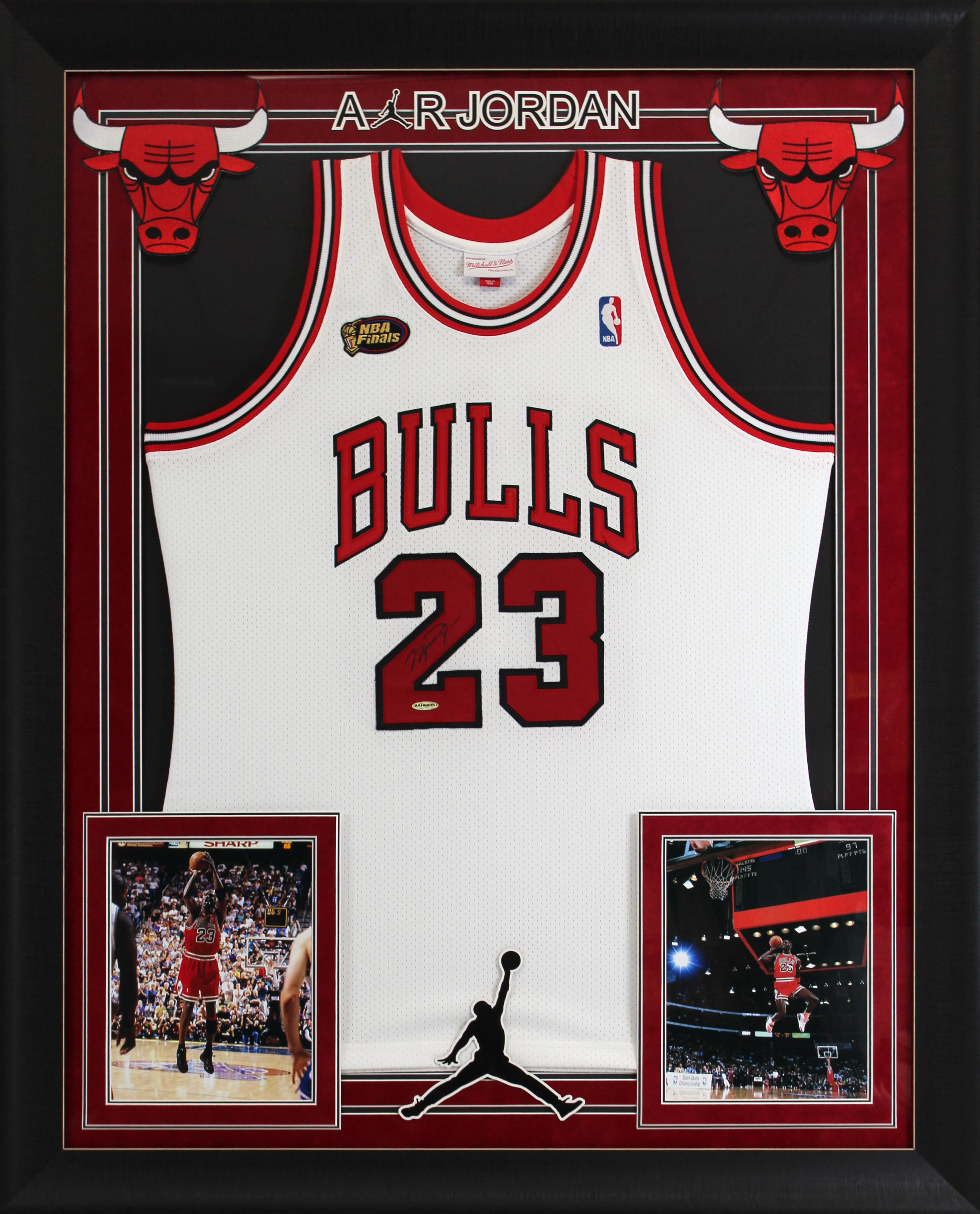 Bulls Michael Jordan Signed White 1997-98 M&N Framed Jersey UDA #BAH60357