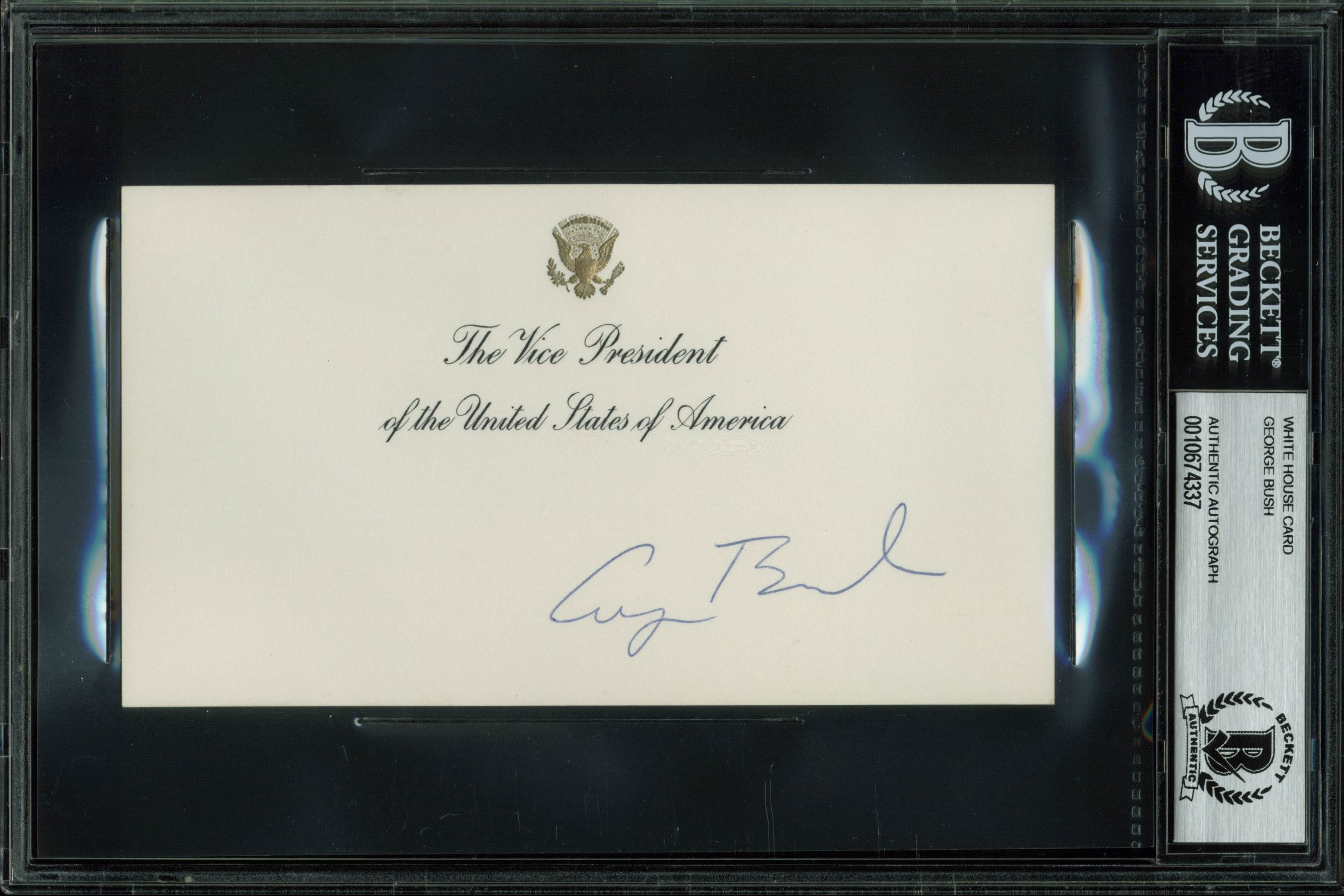 George H.W. Bush Signed 3.5x6.25 Vice President White House Card BAS Slabbed