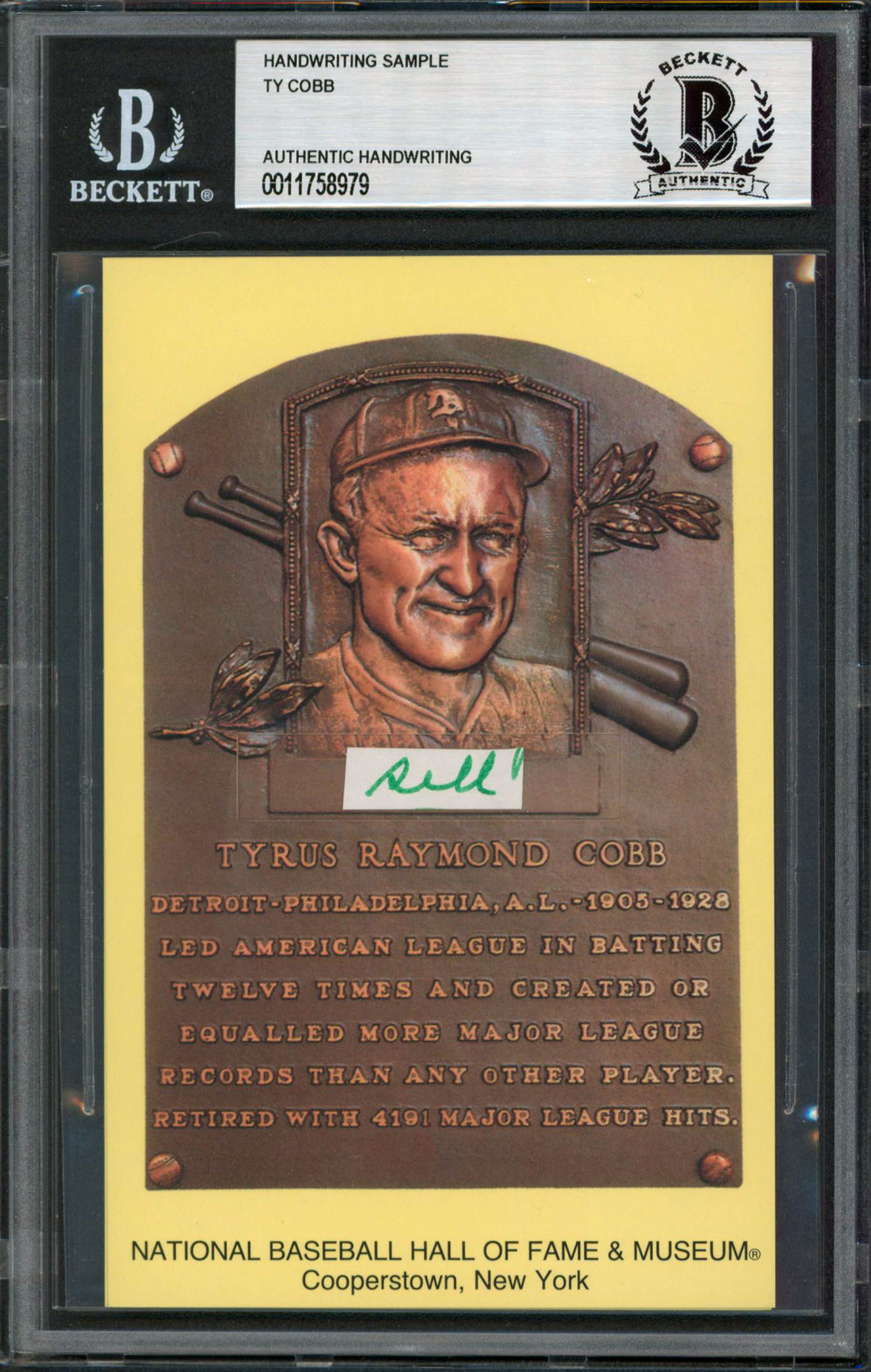 Tigers Ty Cobb Writing Sample 3.5x5.5 HOF Plaque Postcard BAS Slabbed 35