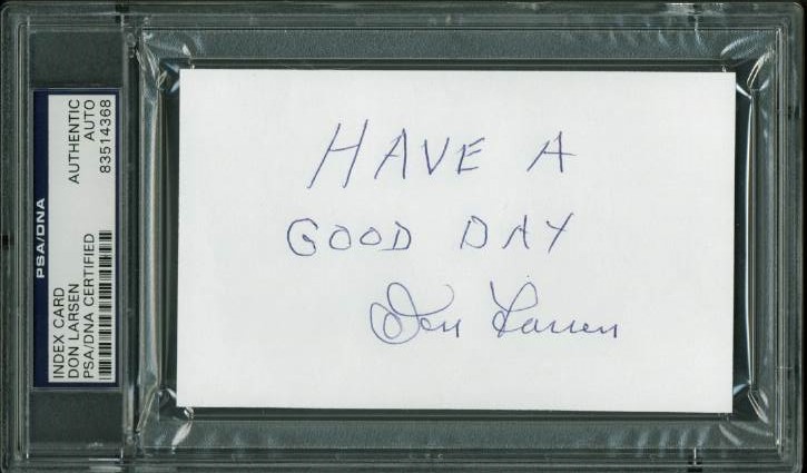 Yankees Don Larsen Authentic Signed 3X5 Index Card Autographed PSA/DNA Slabbed