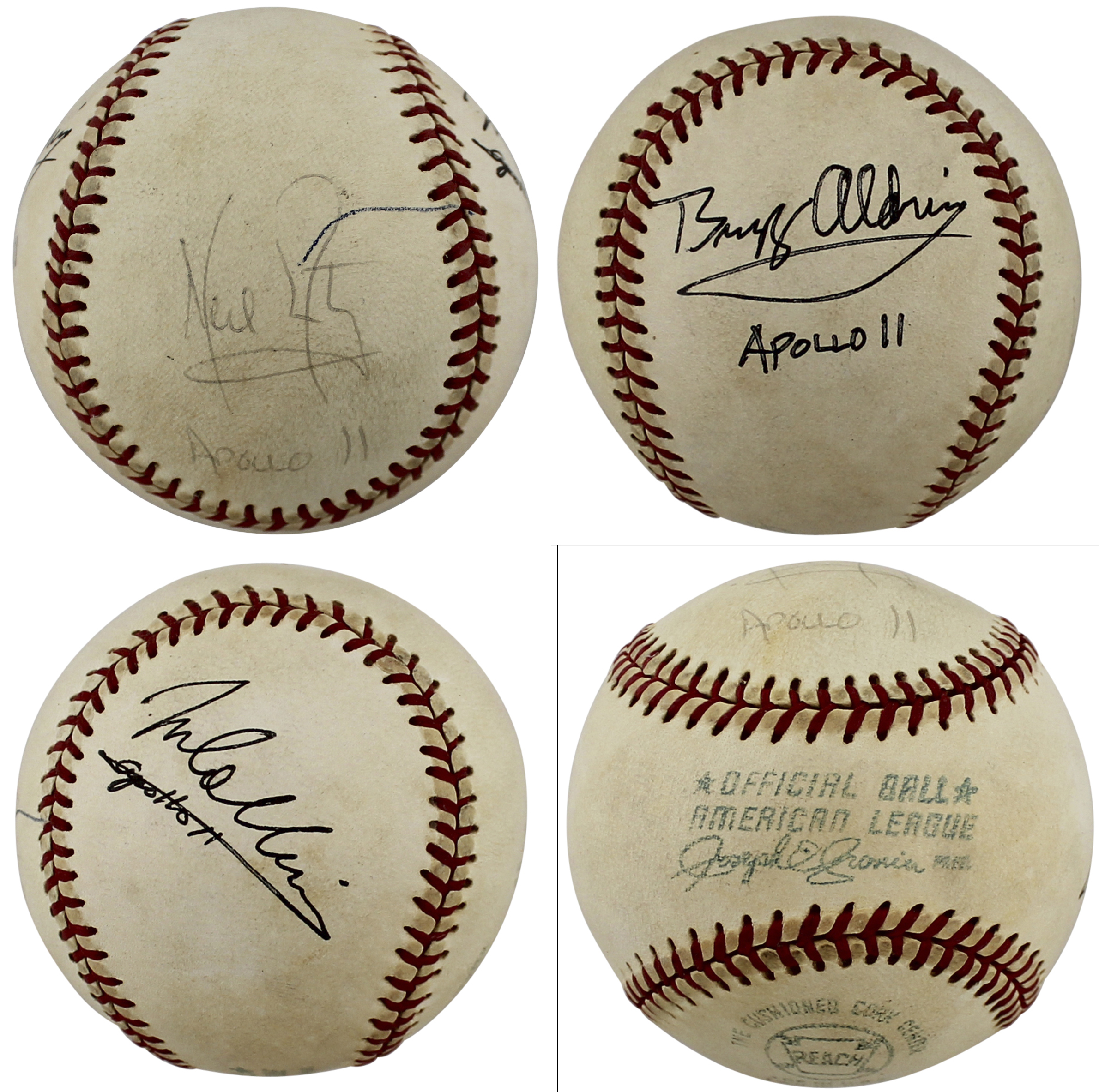 Apollo 11 (3) Armstrong, Aldrin & Collins Authentic Signed Baseball PSA #AC00145