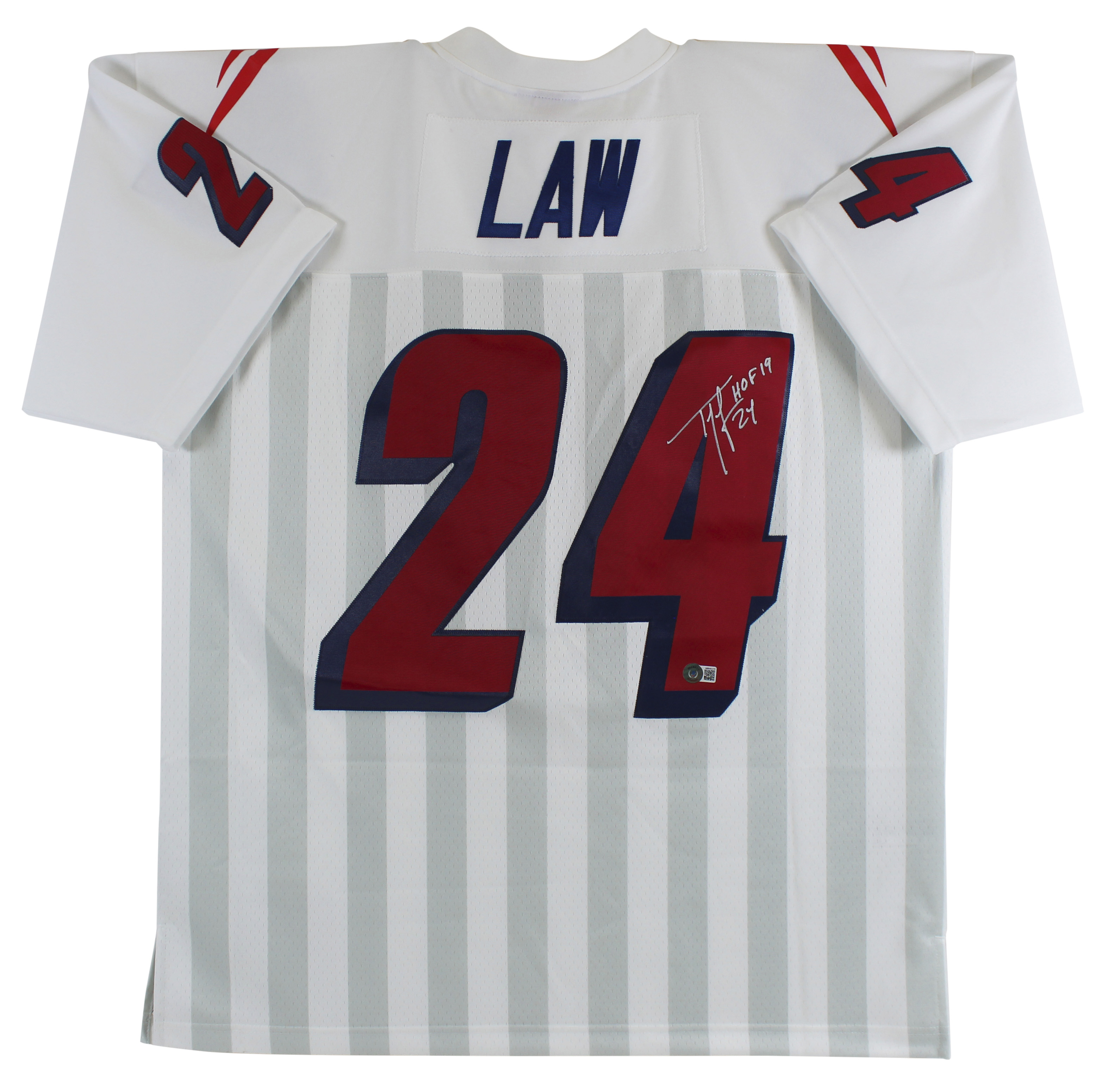Patriots Ty Law "HOF 19" Authentic Signed White Mitchell & Ness Jersey BAS Wit
