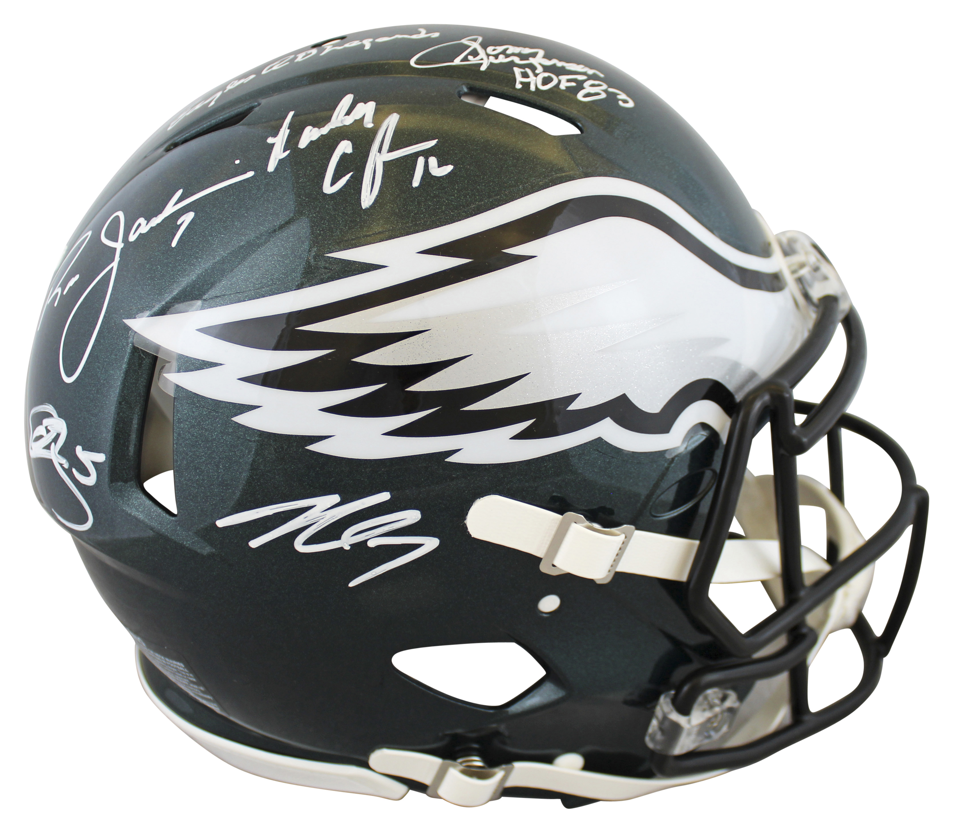 Eagles QBs (5) McNabb, Jaworski, Vick +2 Signed F/S Speed Proline Helmet BAS Wit