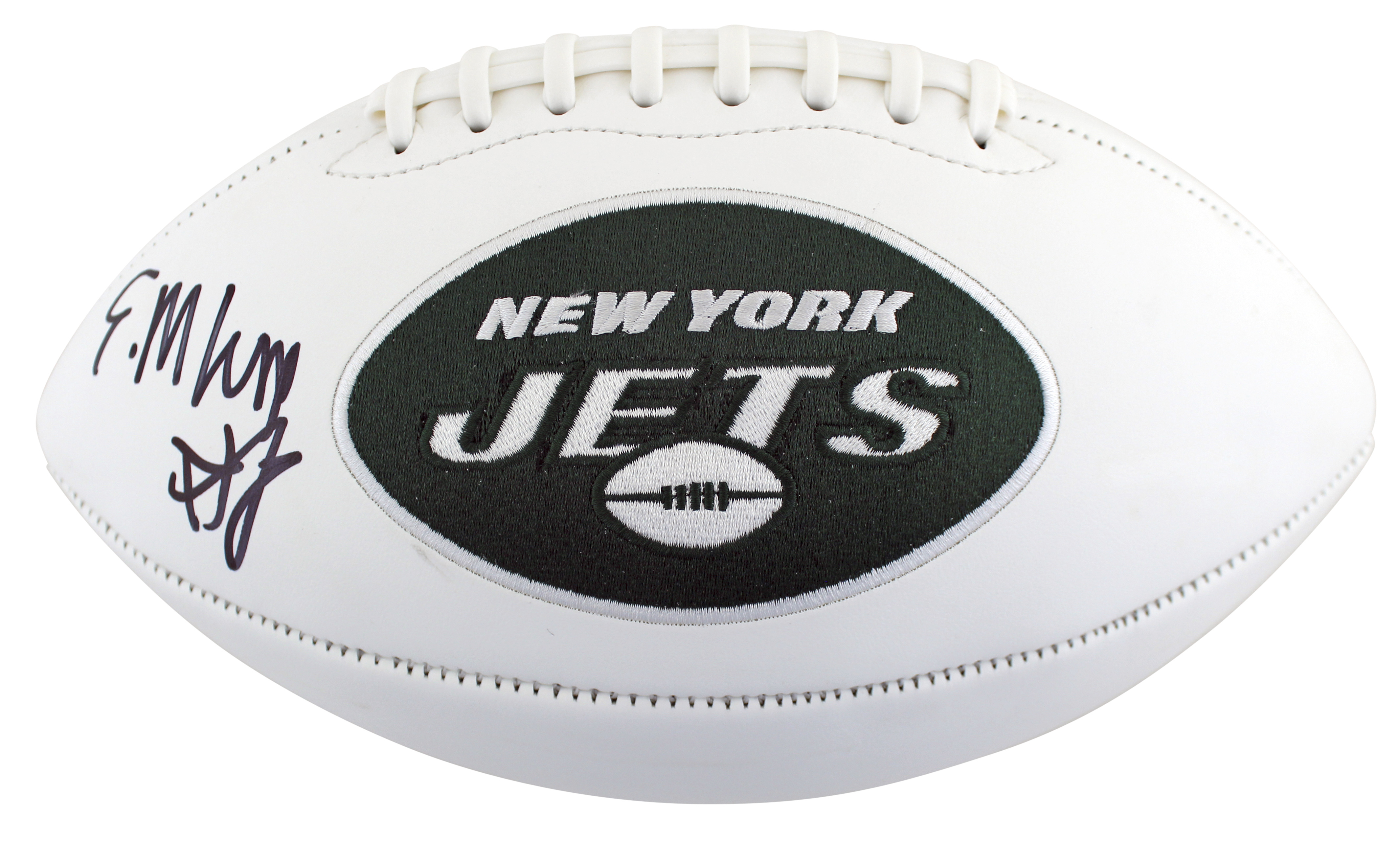 Jets Elijah Moore Authentic Signed White Panel Logo Football BAS Witnessed