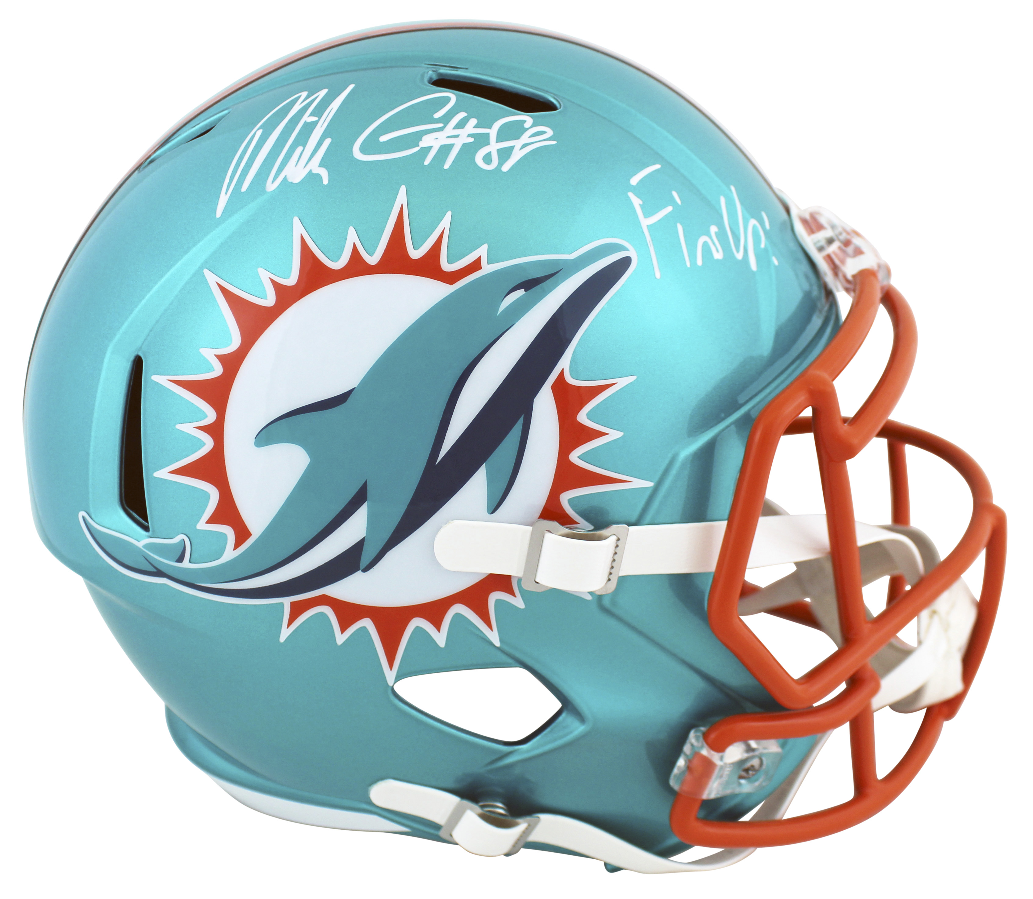 Dolphins Mike Gesicki "Fins Up!" Signed Flash Full Size Speed Rep Helmet BAS Wit