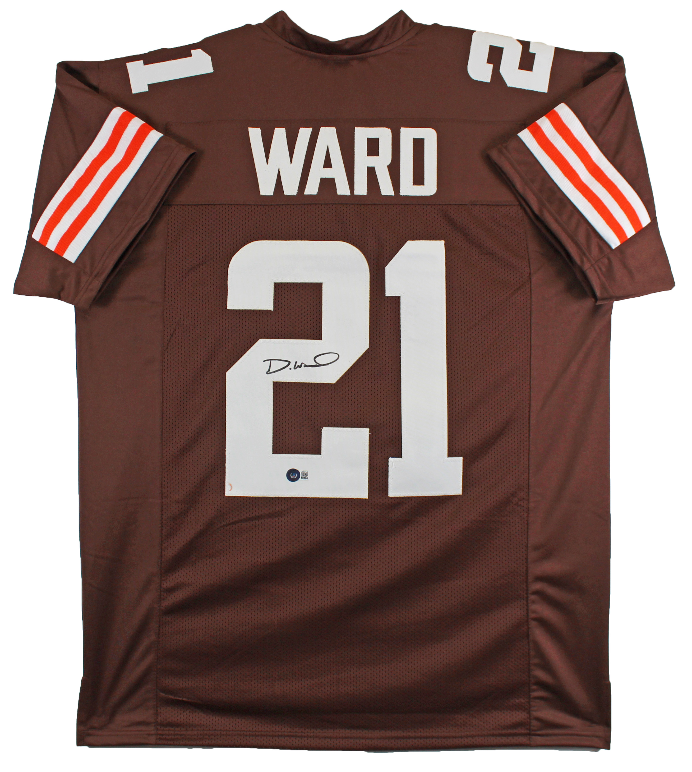 Denzel Ward Authentic Signed Brown Pro Style Jersey w/ White #'s BAS Witnessed
