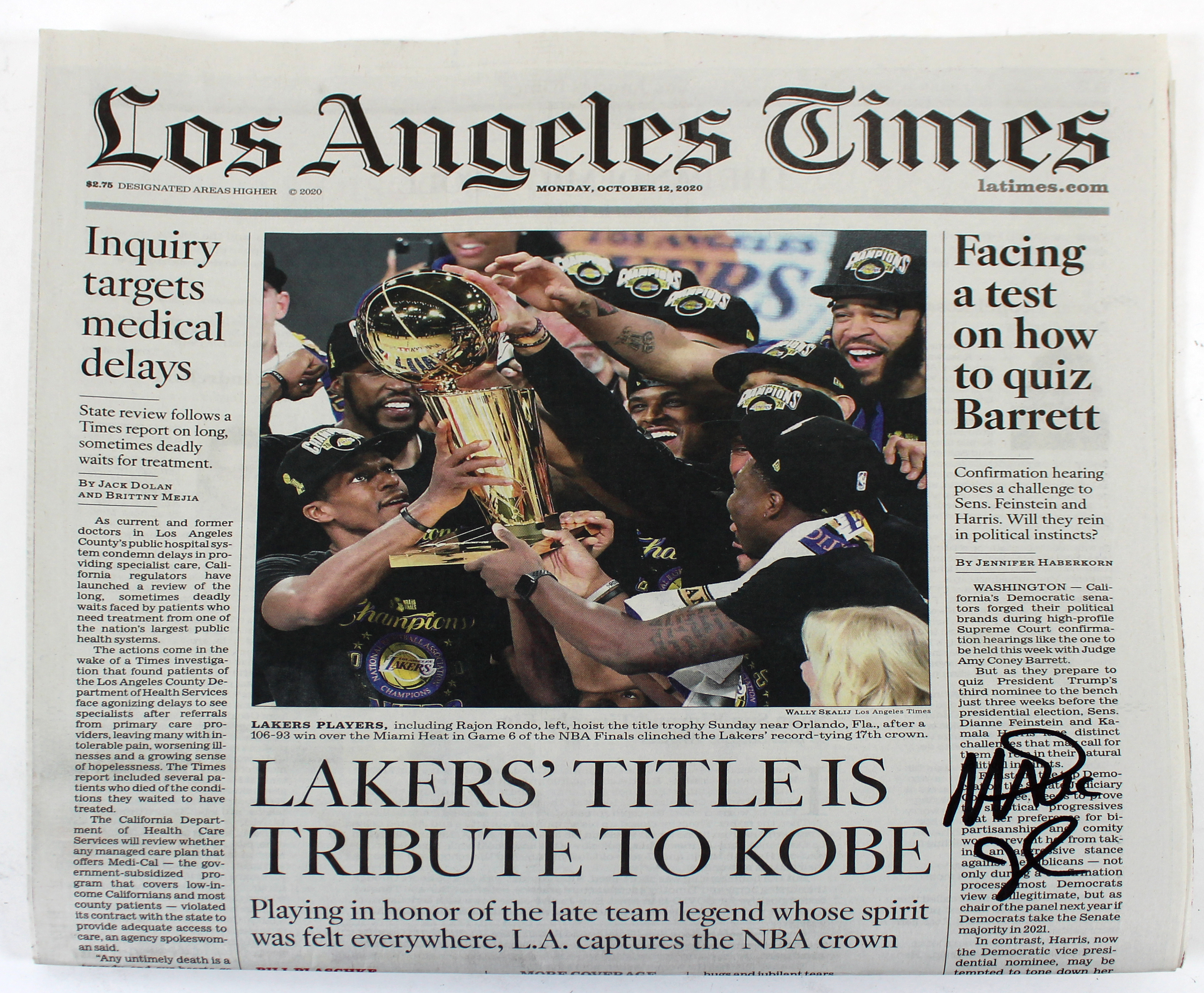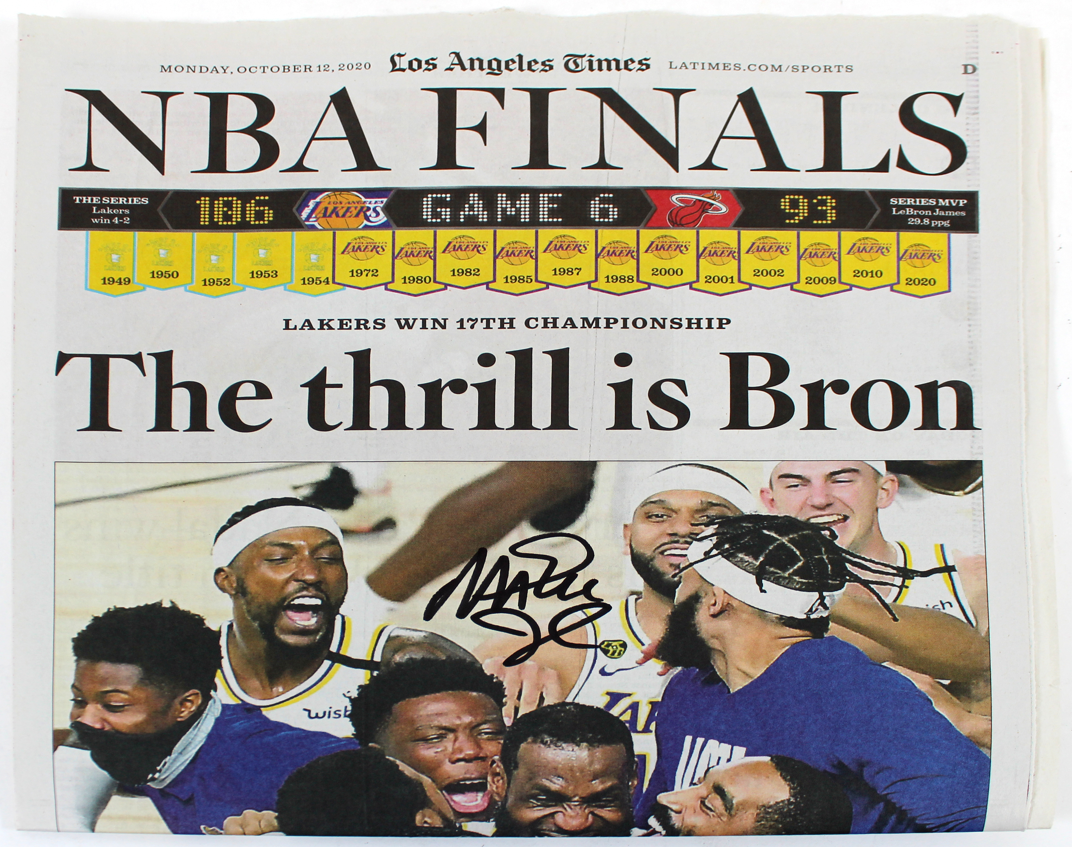 Lakers Magic Johnson Signed LA Times 2020 Champions Edition Newspaper Insert BAS