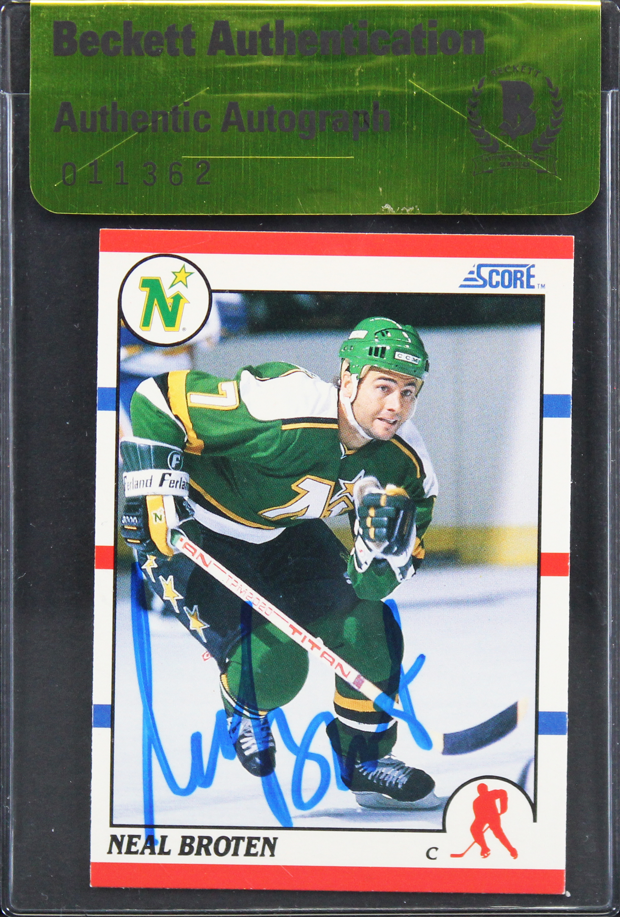 North Stars Neal Broten Authentic Signed 1990 Score #144 Card BAS #11362