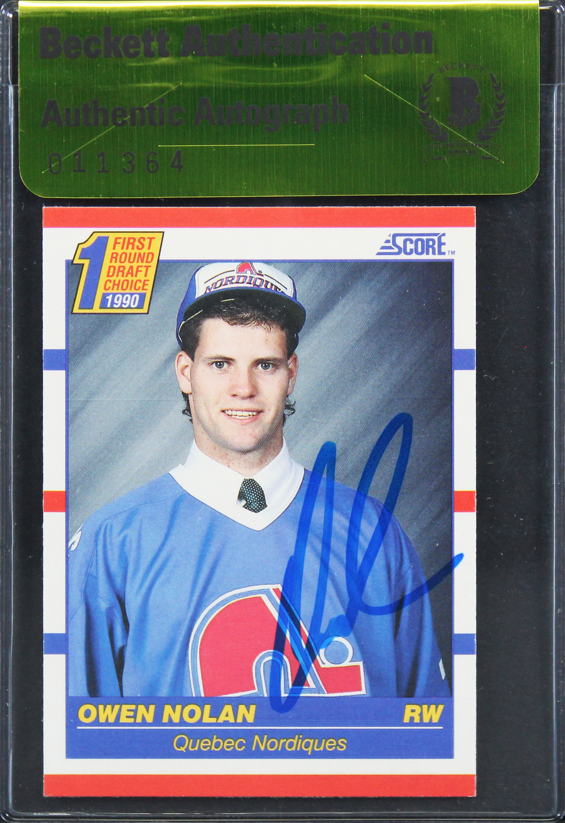 Nordiques Owen Nolan Authentic Signed 1990 Score #435 Card BAS #11364