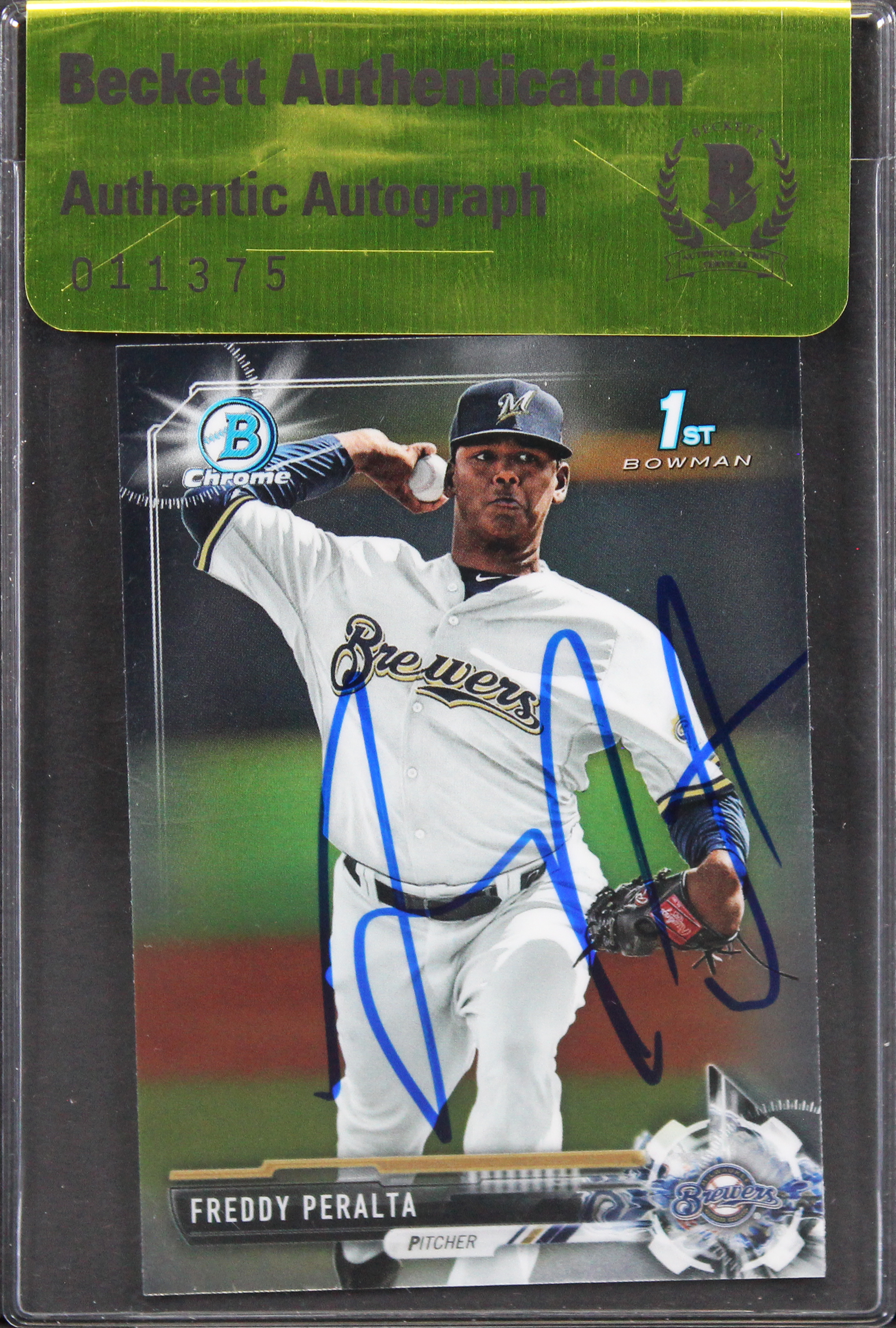 Brewers Freddy Peralta Signed 2017 Bowman Chrome #BCP22 Card BAS #11375