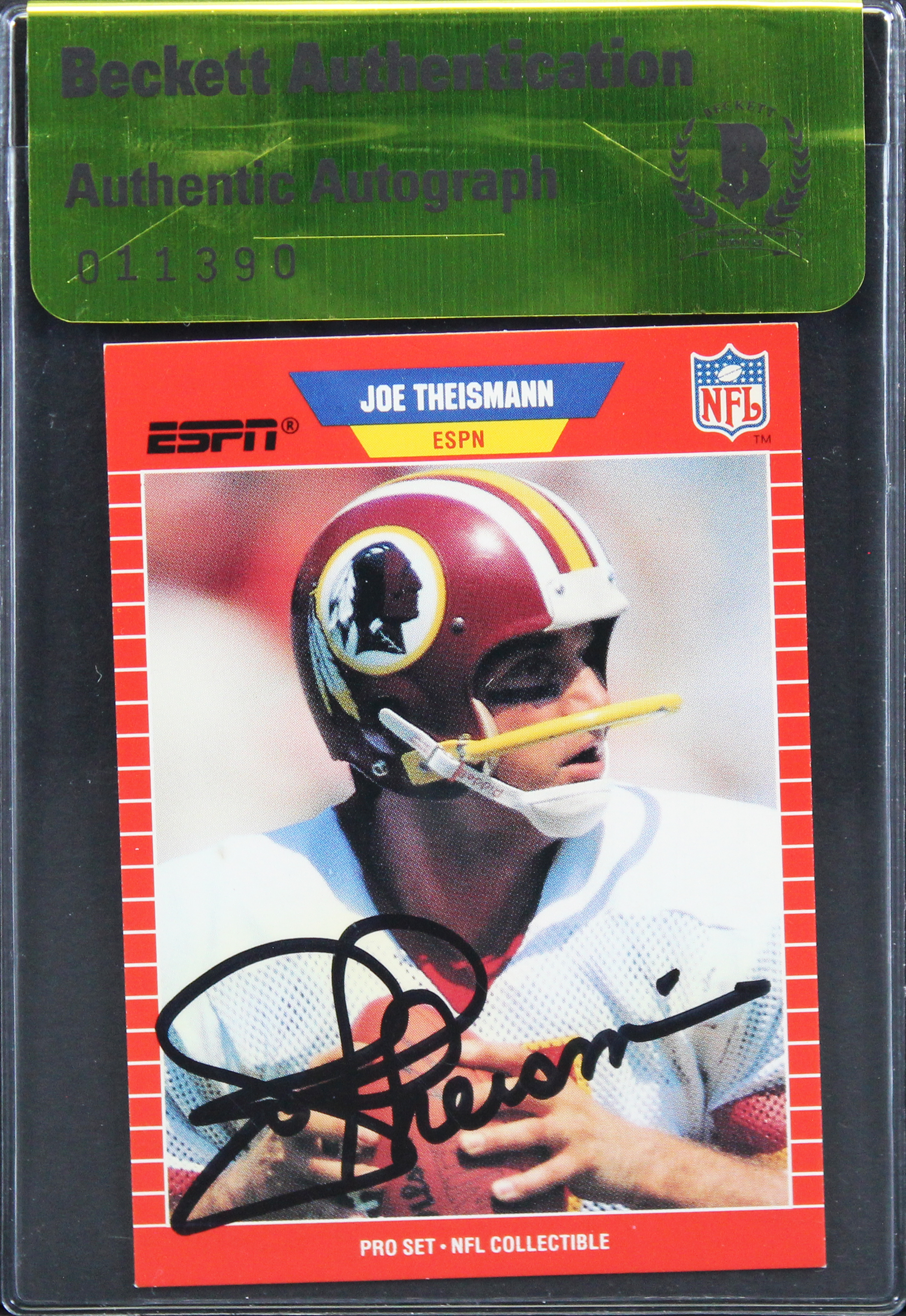Redskins Joe Theisman Signed 1989 NFL Pro Set Announcer #9 Card BAS #11390