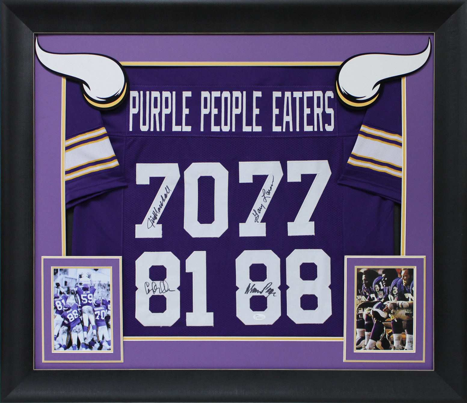 Purple People Eaters (4) Page, Marshall +2 Signed Framed Purple Jersey BAS