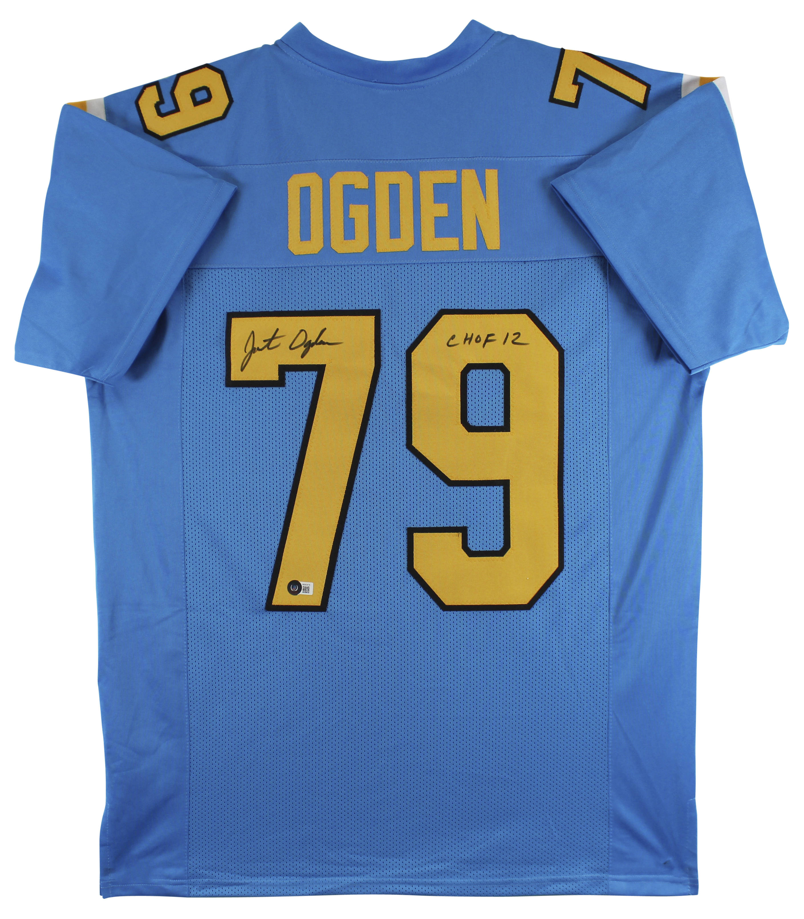 UCLA Jonathan Ogden "CHOF 12" Signed Powder Blue Pro Style Jersey BAS Witnessed