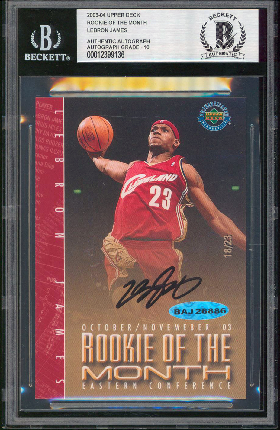 Cavaliers LeBron James Signed 2003 UD ROM Oct/Nov #18/23 Card Auto Grade 10 BAS