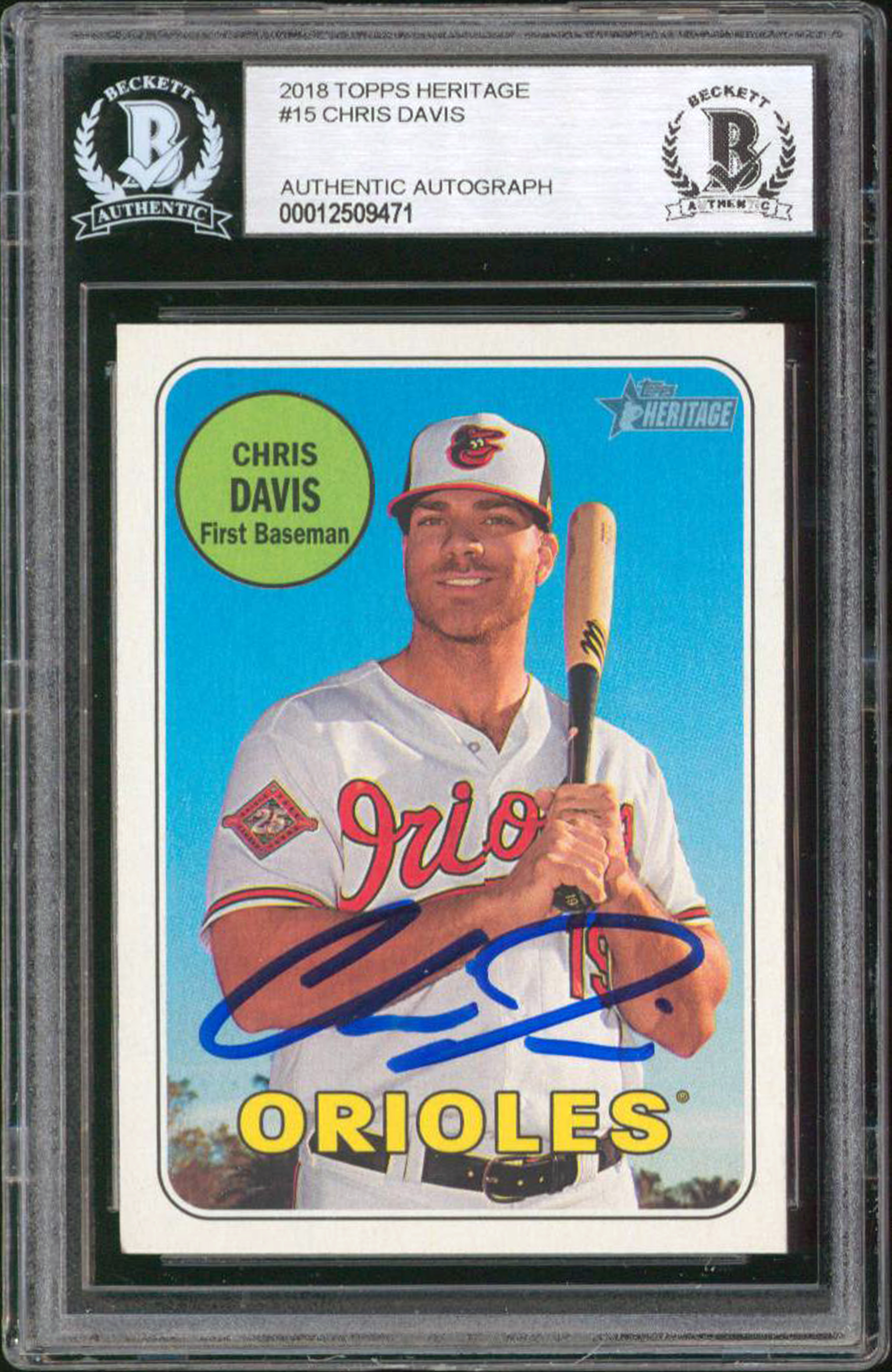 Orioles Chris Davis Signed 2015 Topps Heritage #15 Card BAS Slabbed #12509471