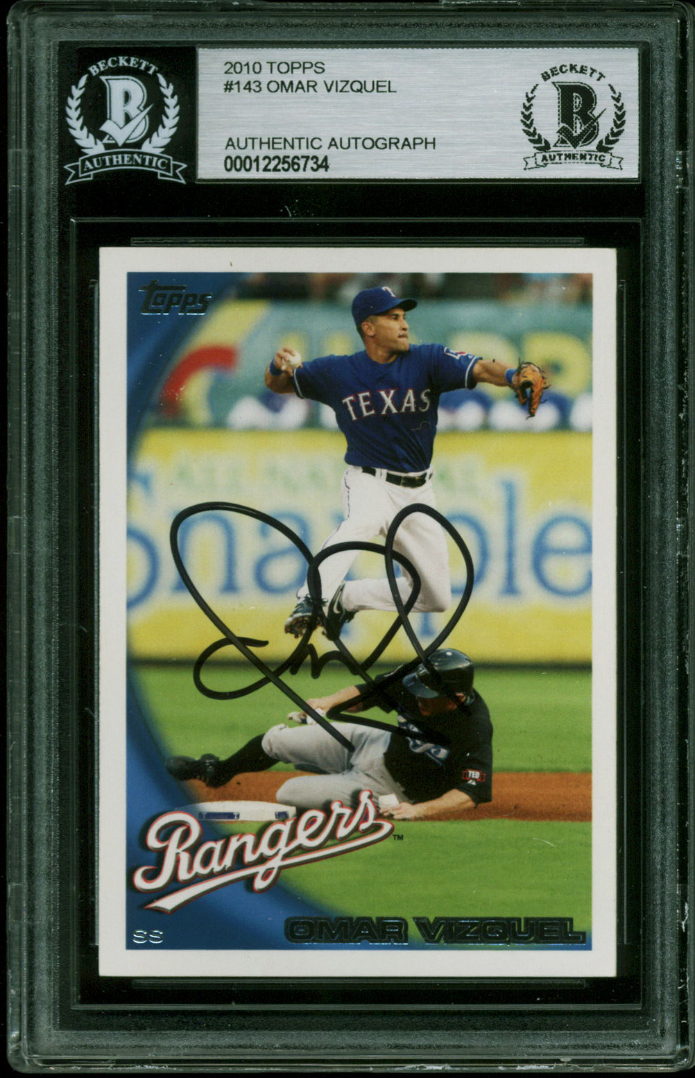 Rangers Omar Vizquel Authentic Signed 2010 Topps #143 Card BAS Slabbed